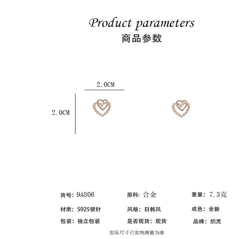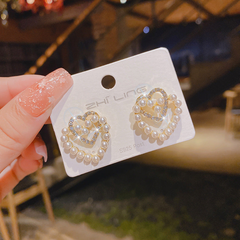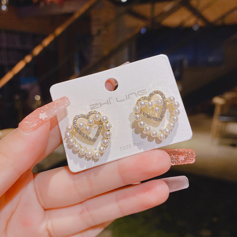 2021 new S925 silver needle French retro diamond-encrusted pearl love earrings personality versatile temperament earrings women