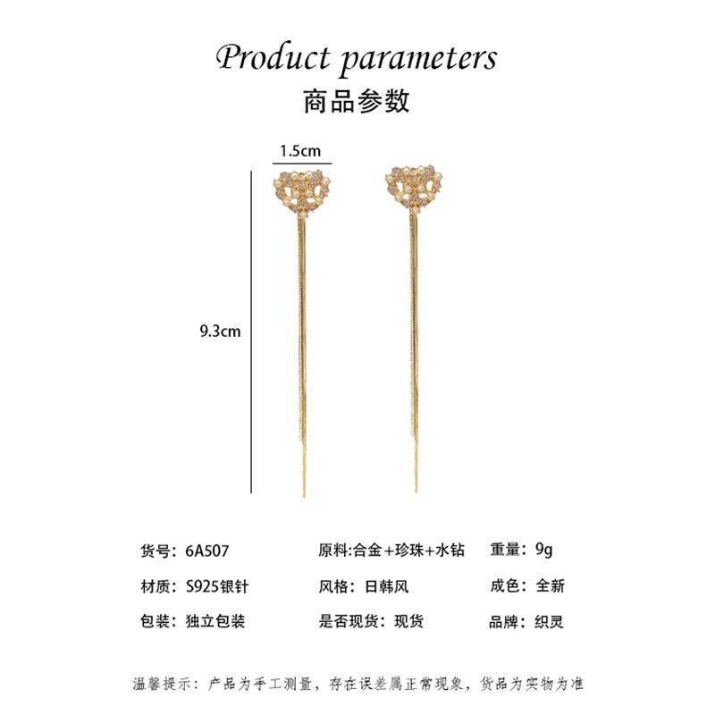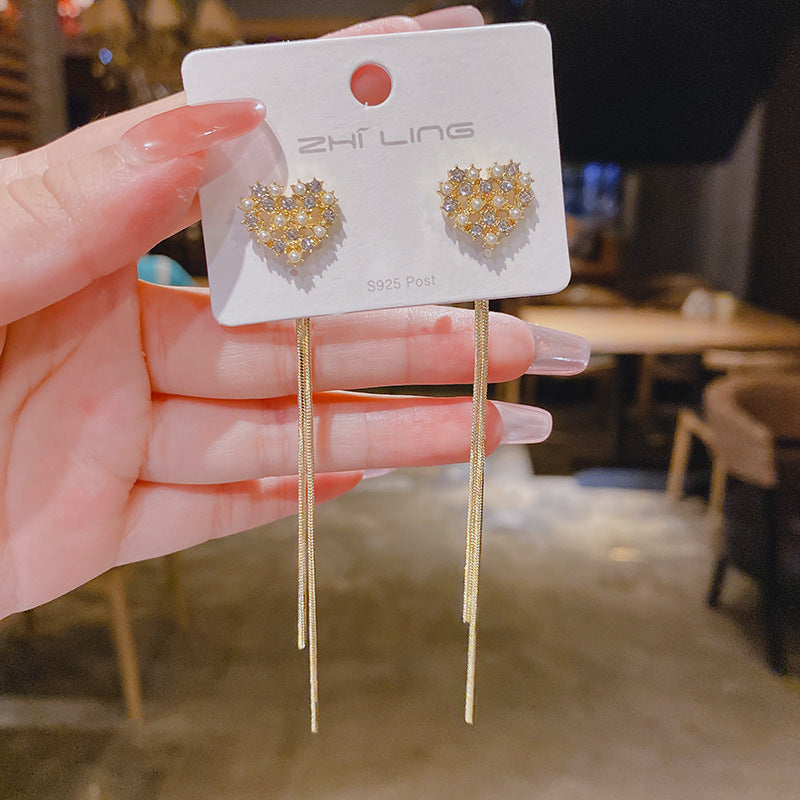 2021 new super fairy temperament long tassel earrings female s925 silver needle zircon heart pearl earrings