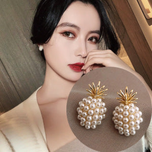 2021 new trendy earrings women's summer style high-end s925 imitation silver needle pearl earrings niche design earrings