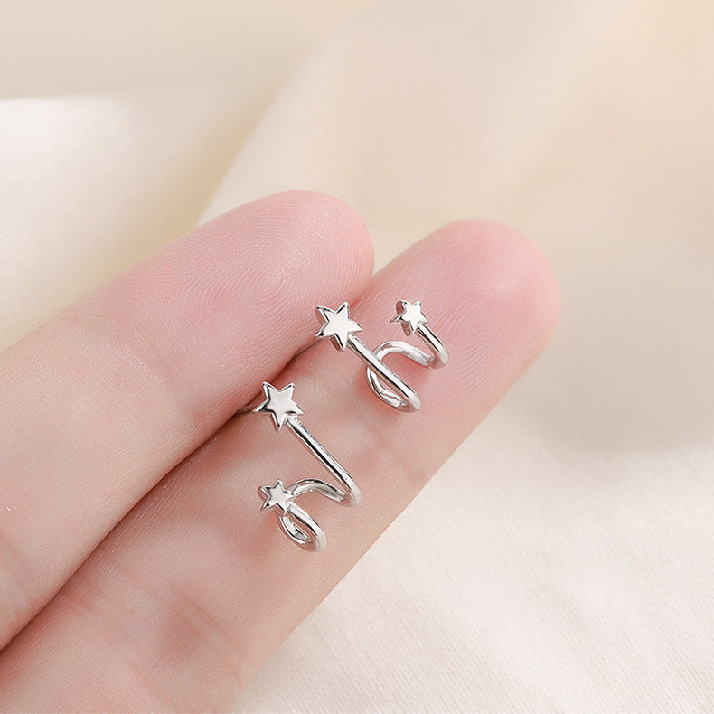 2021 new trendy exquisite sterling silver stud earrings earrings personalized design jewelry earrings women's double-layer star ear clips