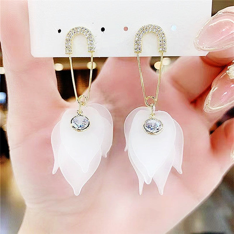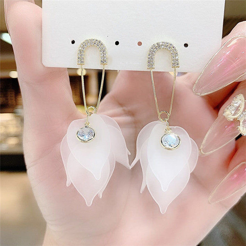 2021 new trendy Korean transparent white petal tassel earrings long temperament personality female earrings earrings earrings earrings