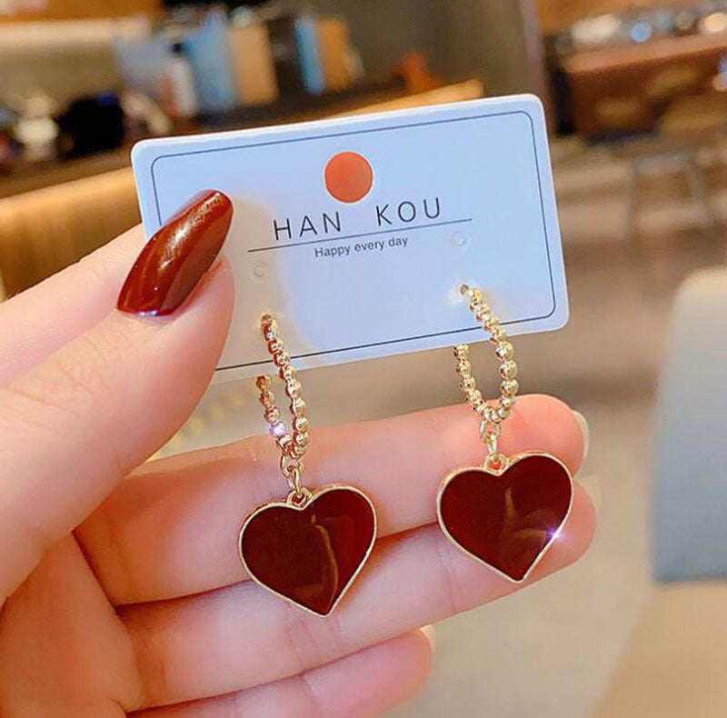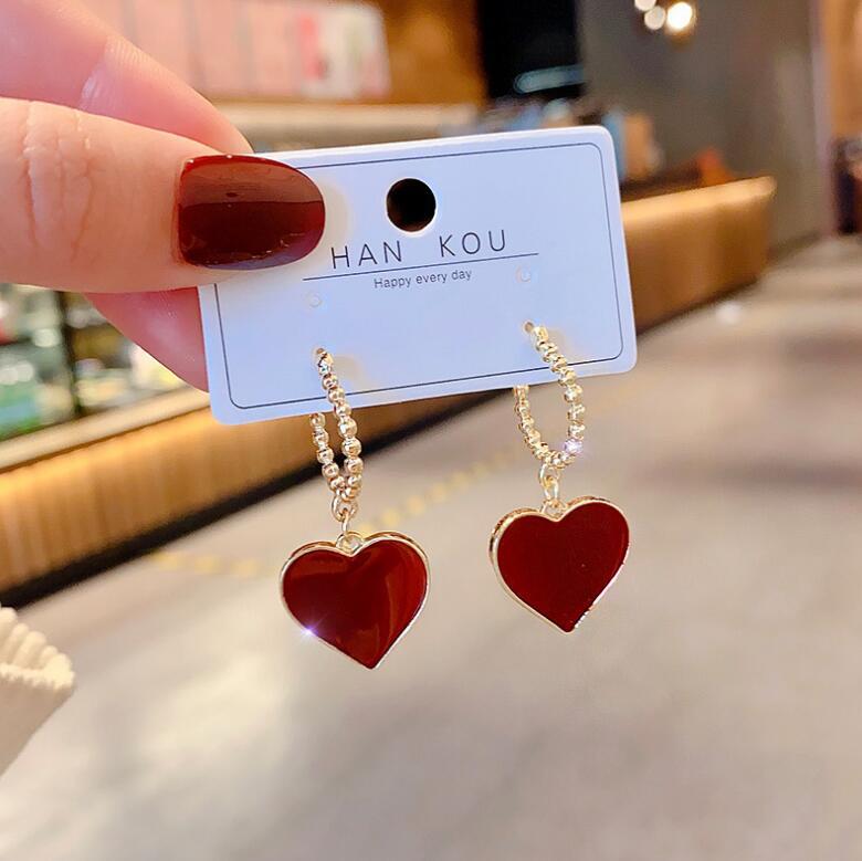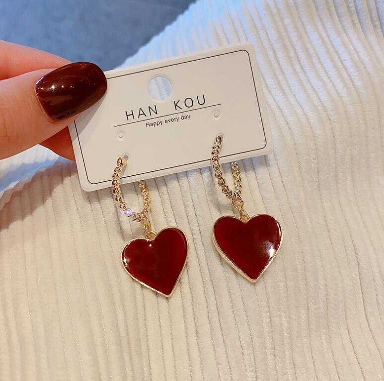 2021 new trendy silver needle earrings 925 silver red retro love earrings female net red temperament cold wind earrings
