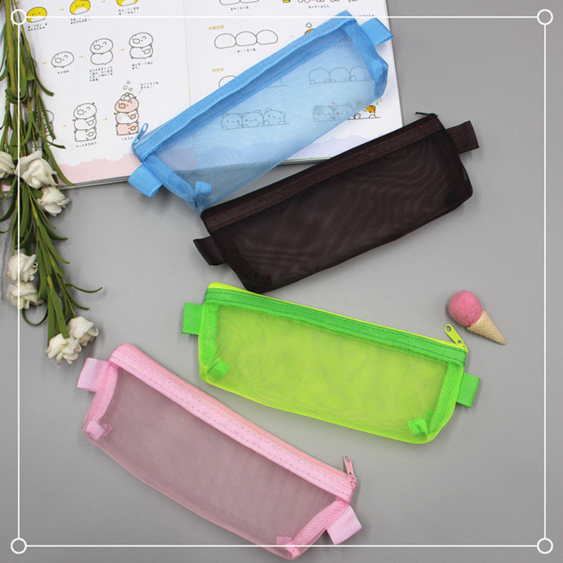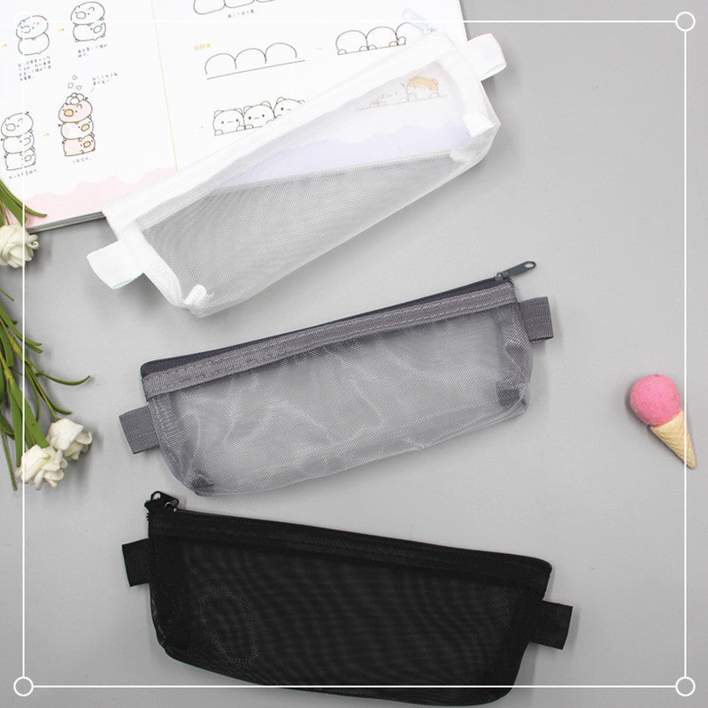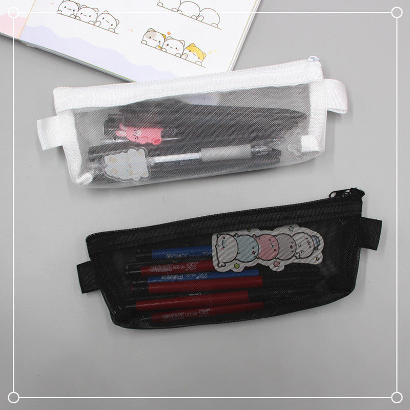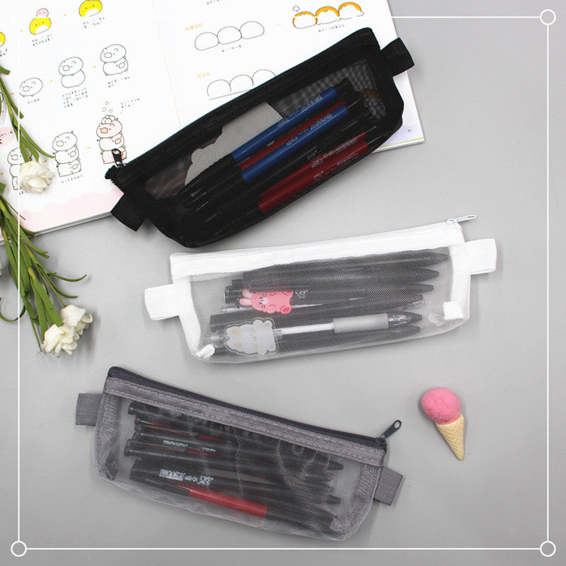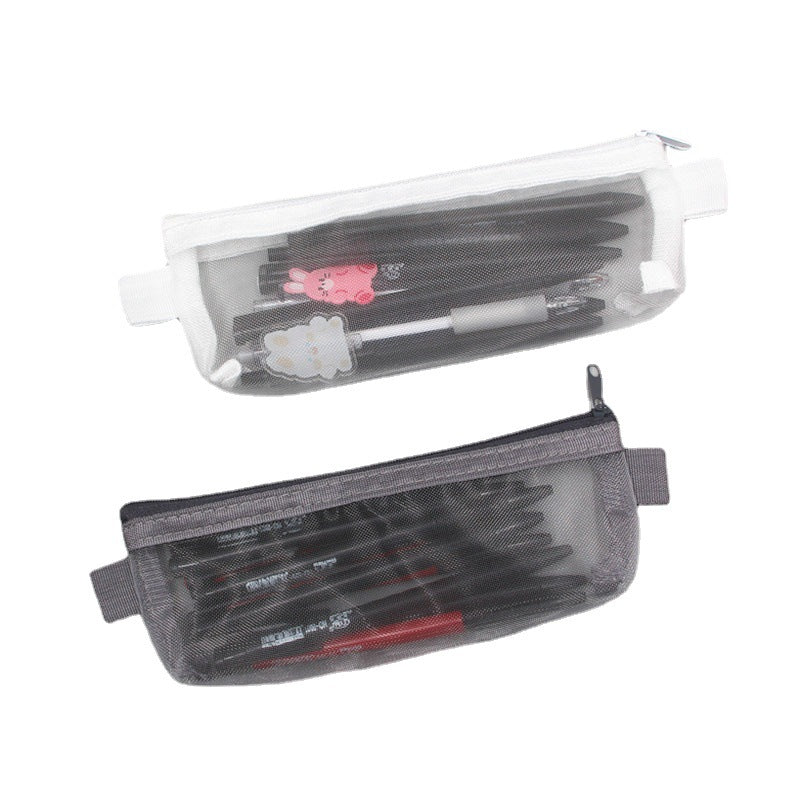 2021 school season student pencil bag exam portable pencil bag simple transparent mesh stationery bag zipper file bag