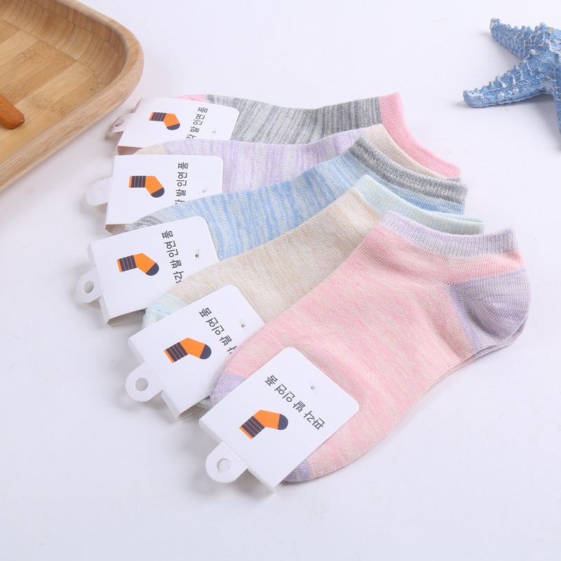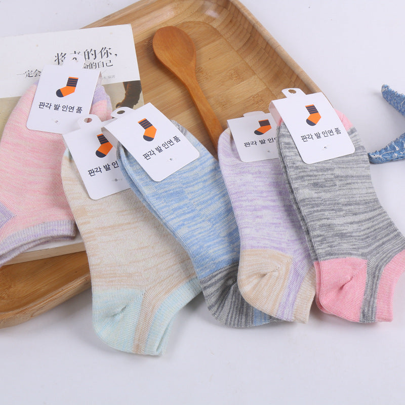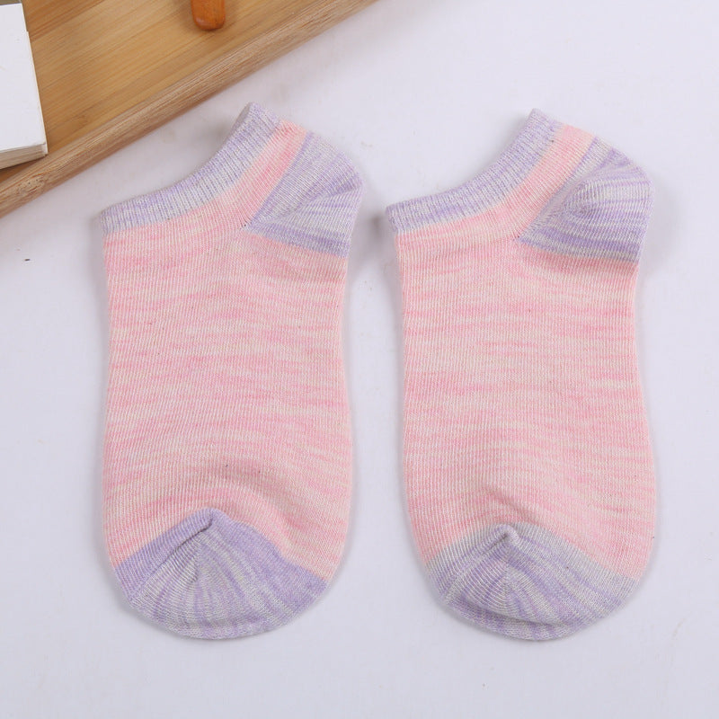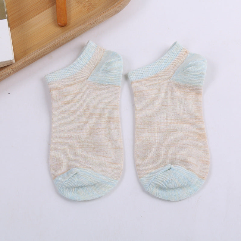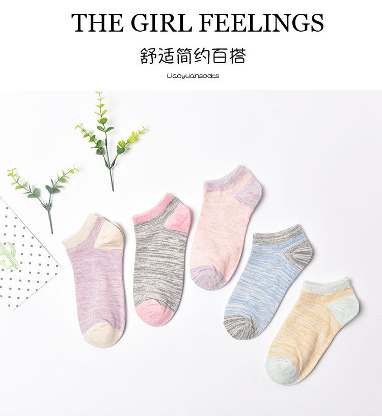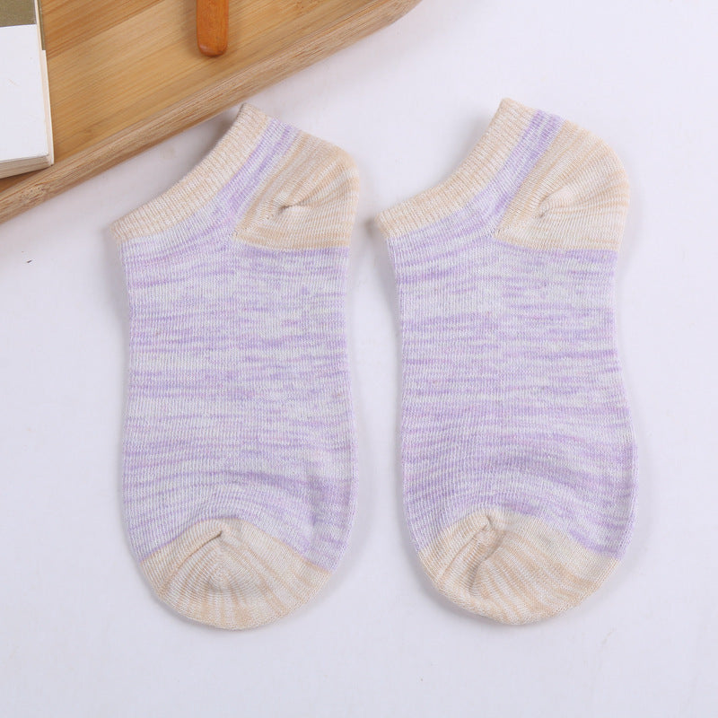 2021 spring and summer new products parallel line boat socks female Korean version ladies double needle color matching low cut shallow mouth fashion cotton socks wholesale