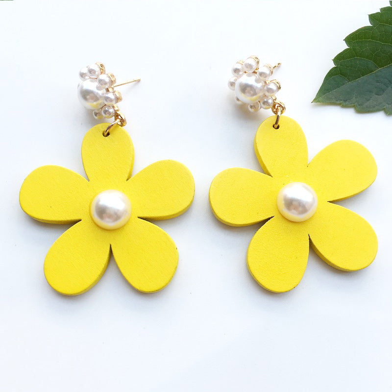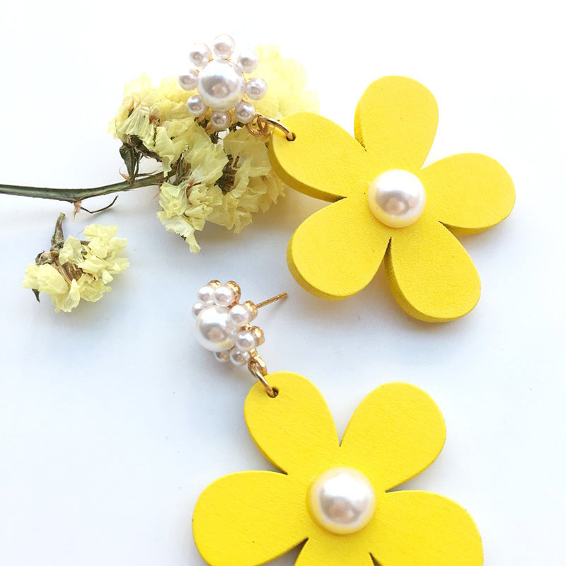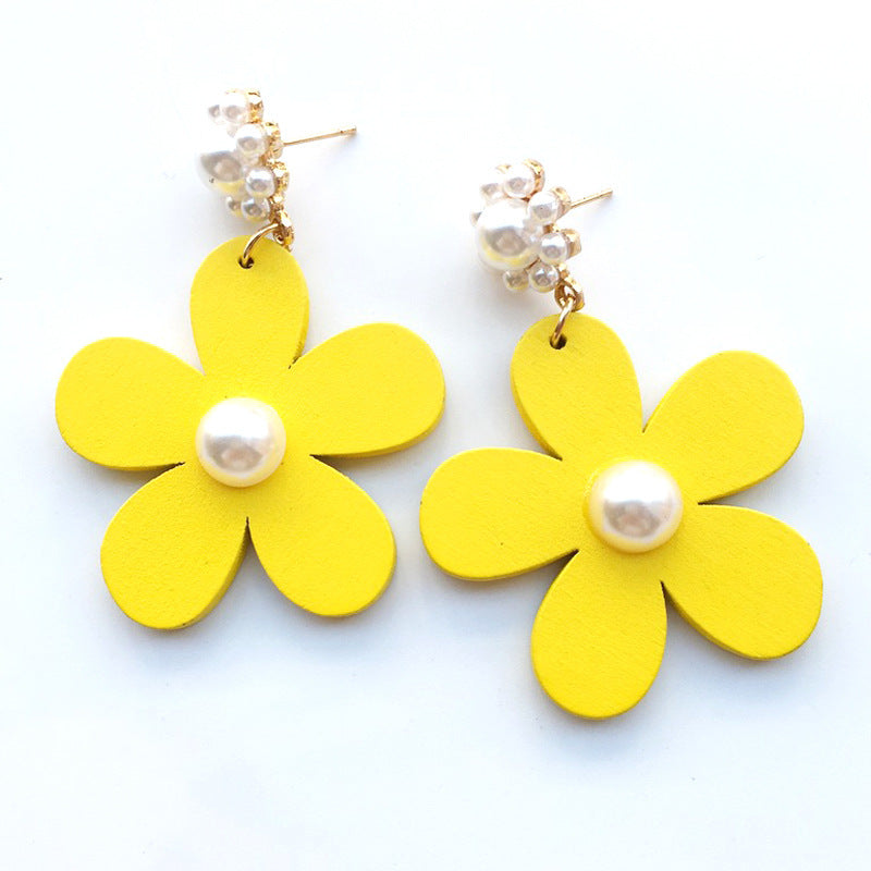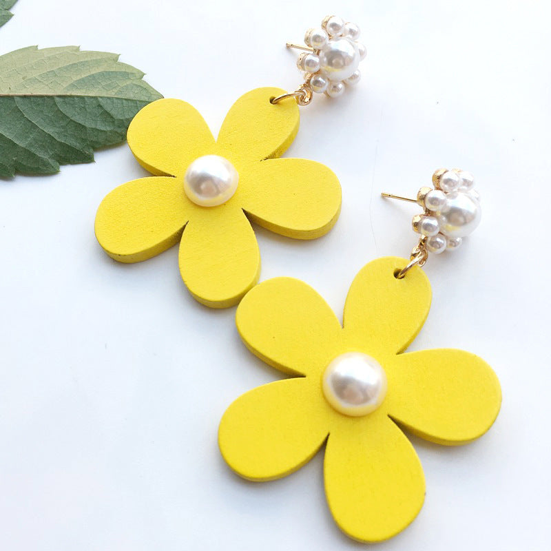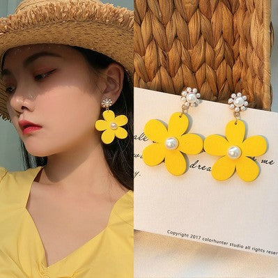 2021 summer dream color fresh flower pearl pistil earrings European and American famous all-match petal earrings B394
