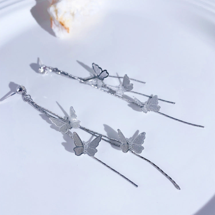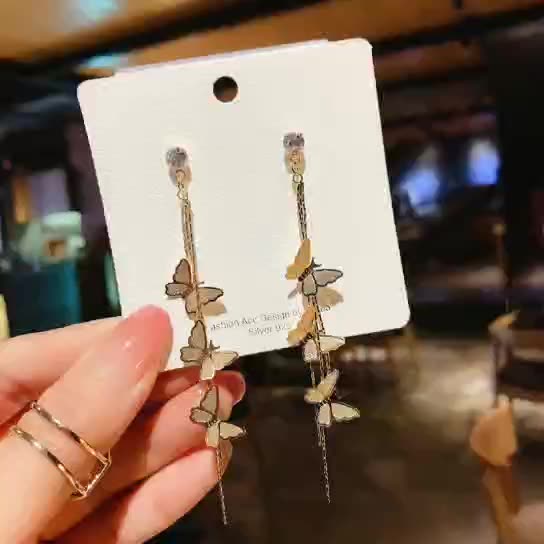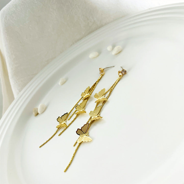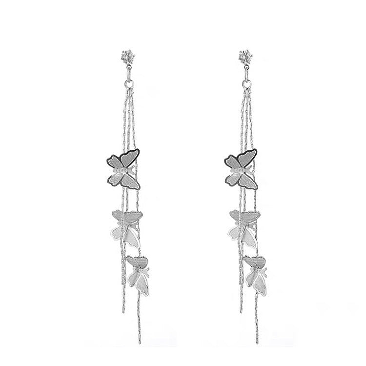2021 Summer New Product Super Fairy Butterfly Long Tassel Earrings Korean Style Net Red Temperament Fashion Versatile Ear Accessories
