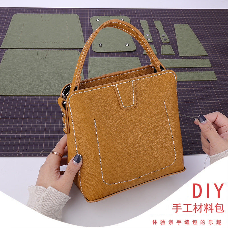 2021 trendy shoulder Messenger bag women's large capacity bucket tote bag diy hand-woven bag self-made material bag
