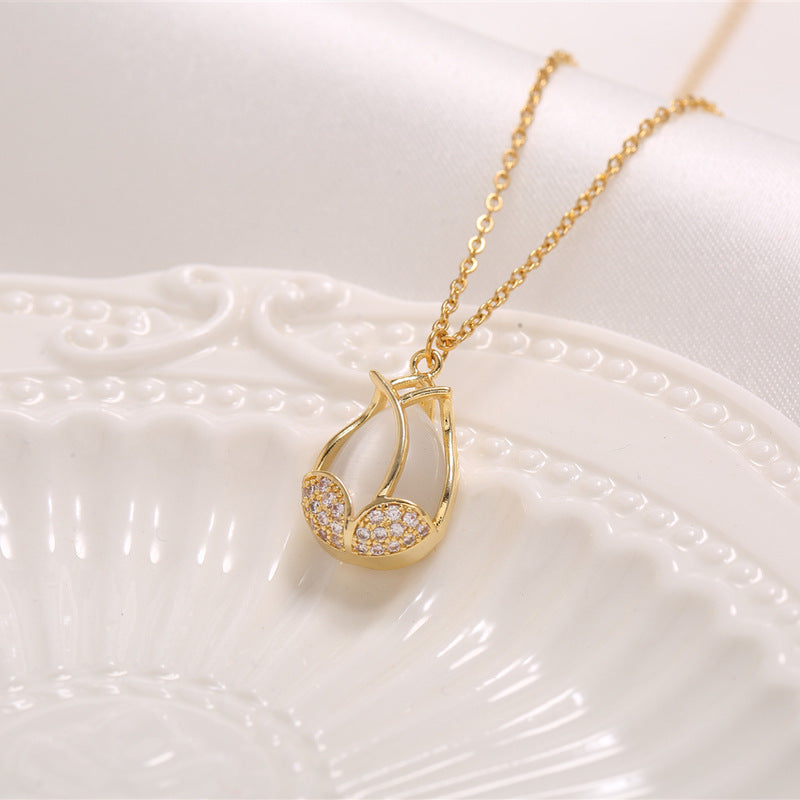 2021 Tulip Flower Necklace Female Opal Diamond Pendant Female Personality Clavicle Chain Non-fading Design Sense