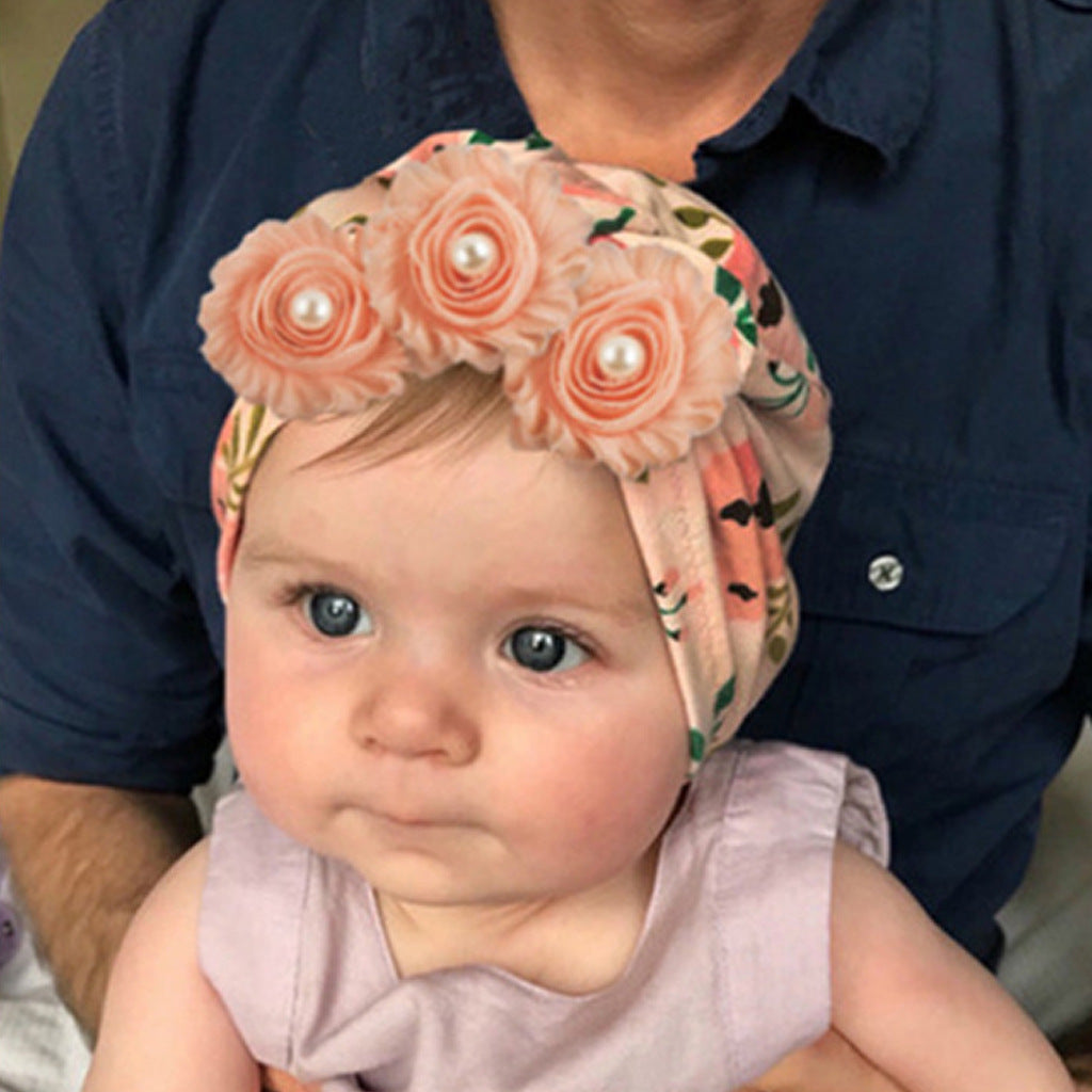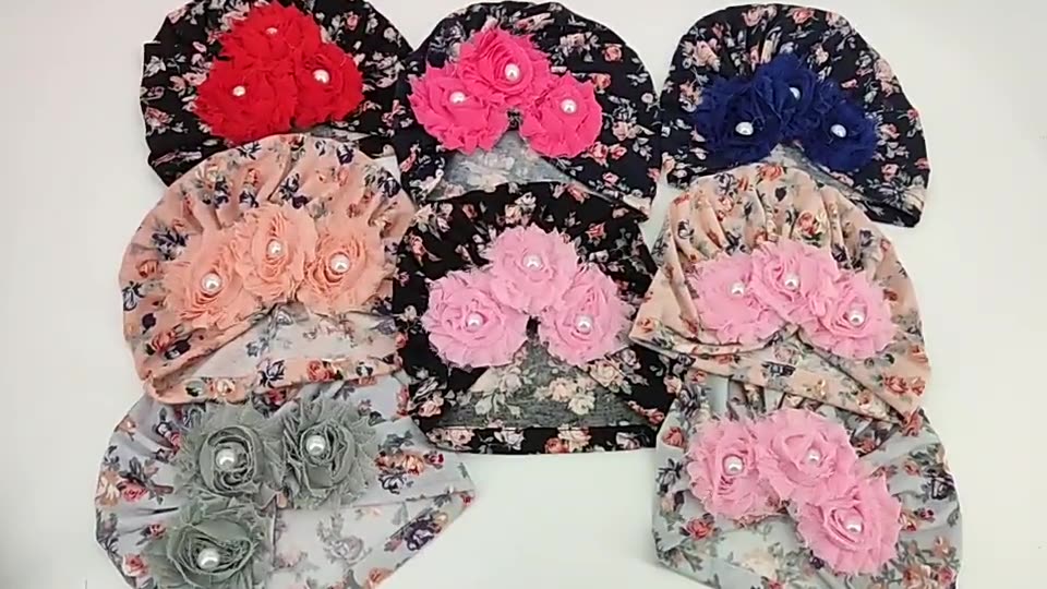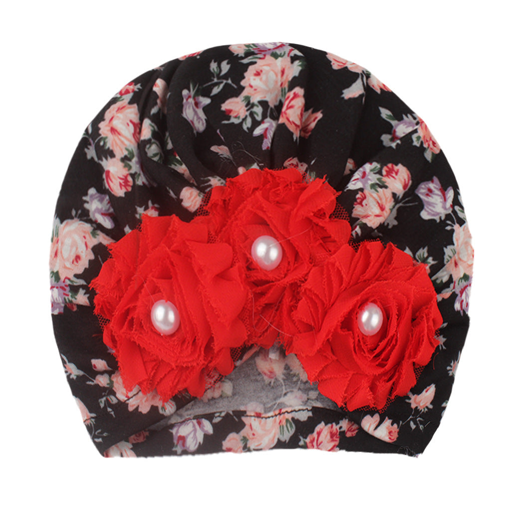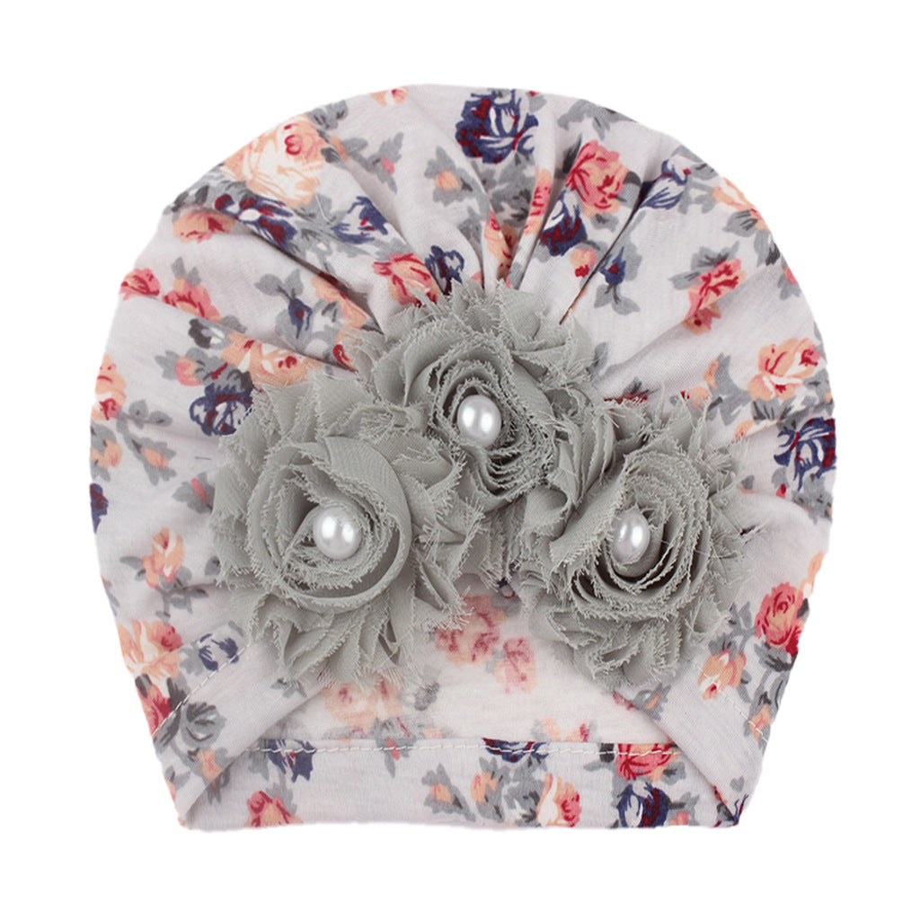 2022 Amazon Europe and the United States new baby baby soft printed children's hat sun flower sticky beads pullover hat
