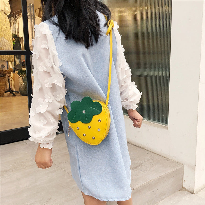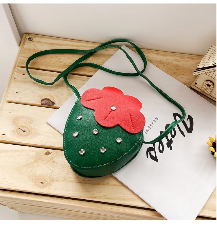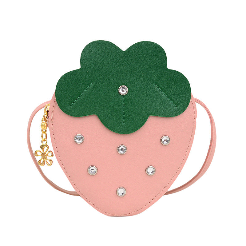 2022 Amoi Cartoon Cute Children Diagonal Small Bag Strawberry Rhinestone Western Style Princess Coin Purse Wholesale