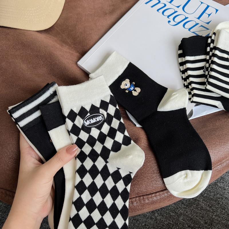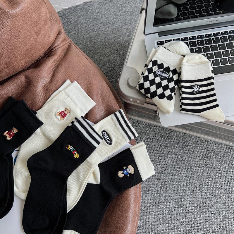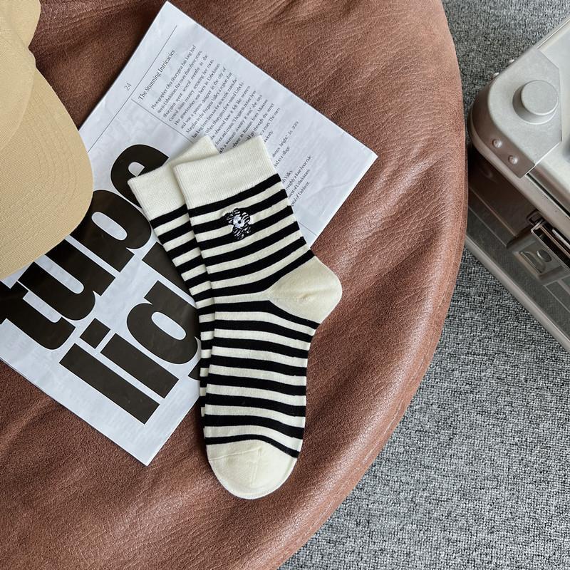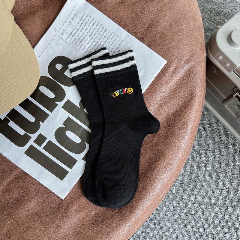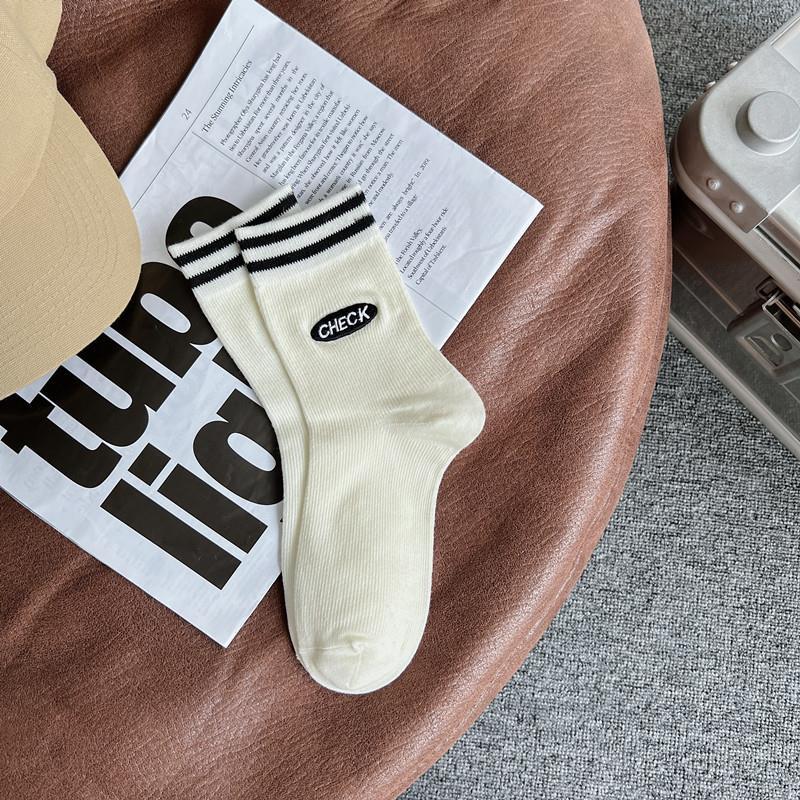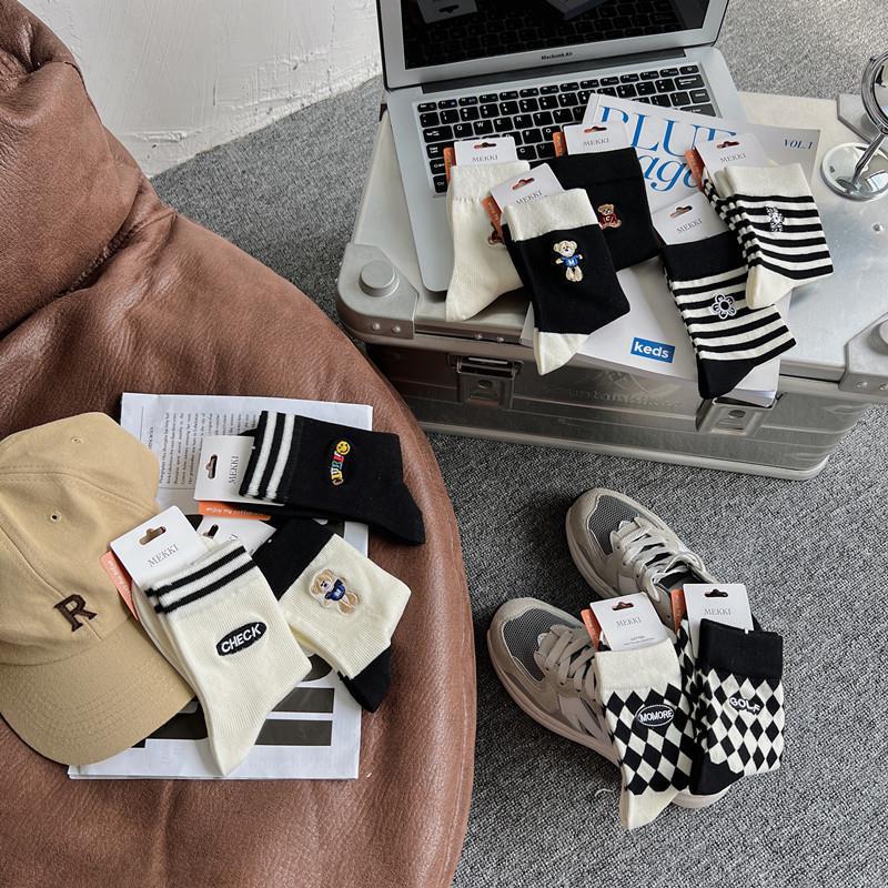 2022 autumn and winter new combed cotton black and white embroidery casual ladies middle tube socks students high tube socks ins tide
