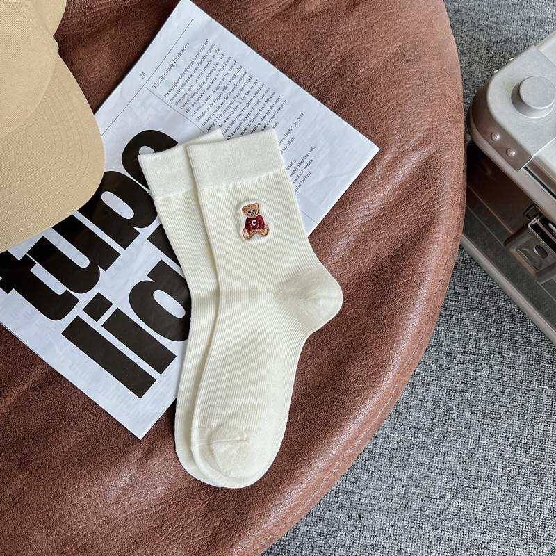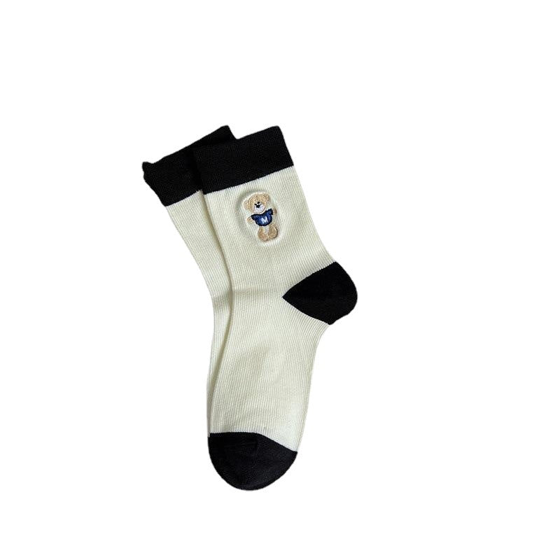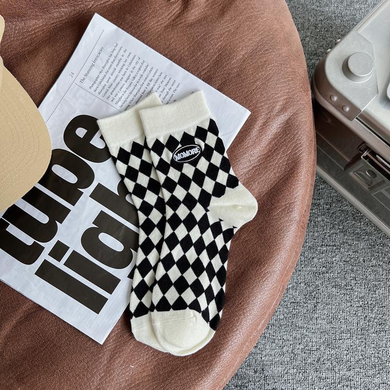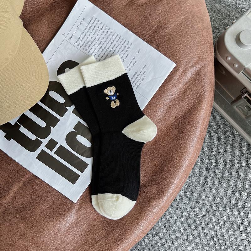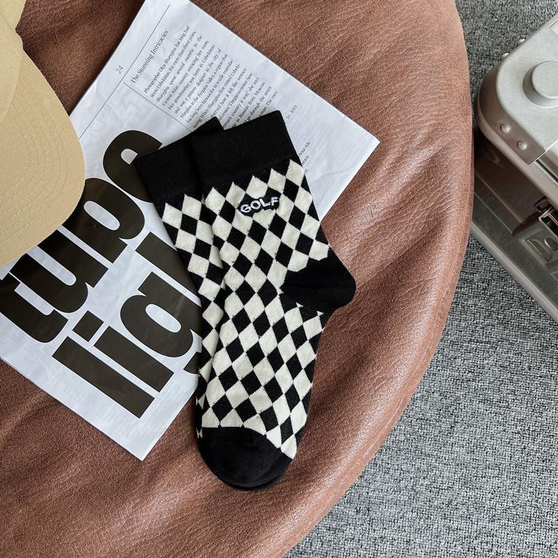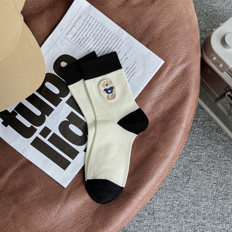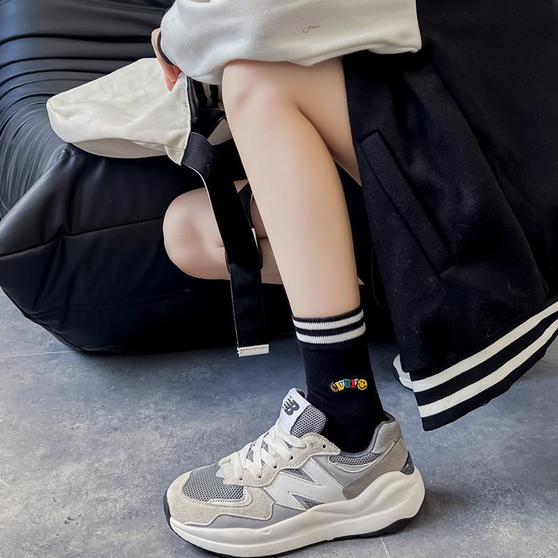 2022 autumn and winter new combed cotton black and white embroidery casual ladies middle tube socks students high tube socks ins tide