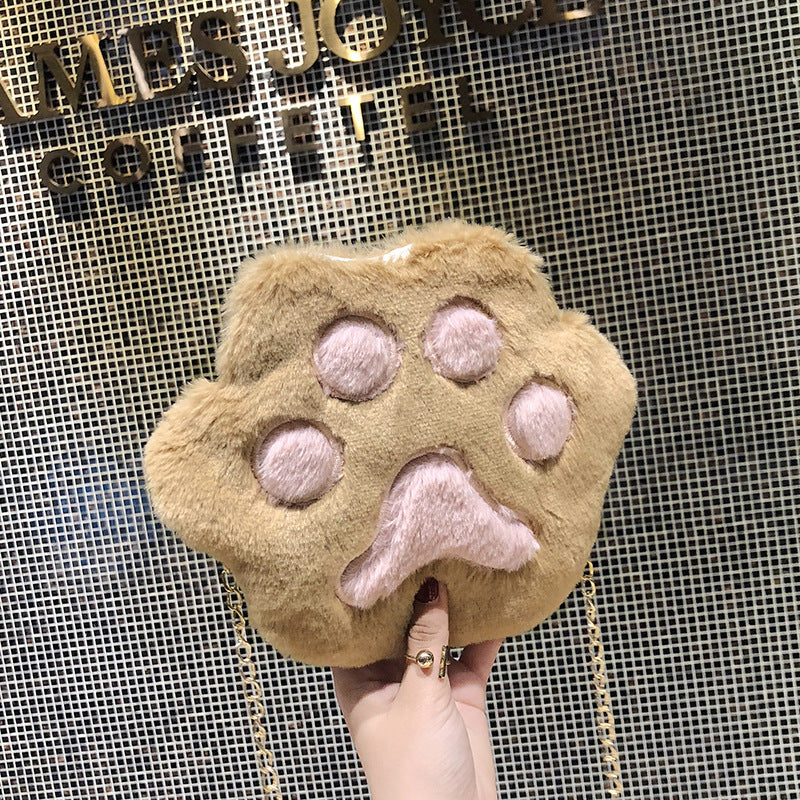 2022 autumn and winter new Korean version of furry bear paw small round bag contrasting color simple mini girls chain shoulder Messenger bag
