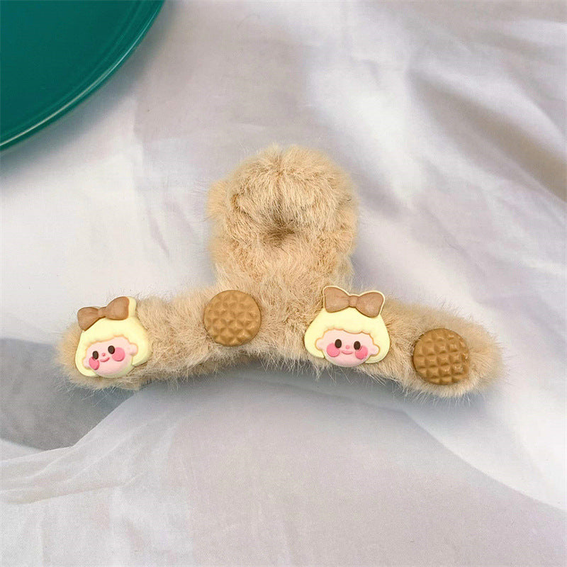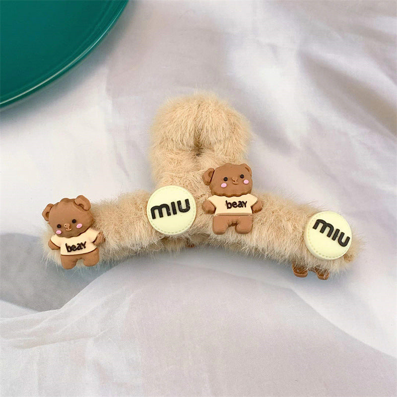 2022 autumn and winter new plush bowknot tassel hair clip back head grab clip female hair clip shark clip wholesale