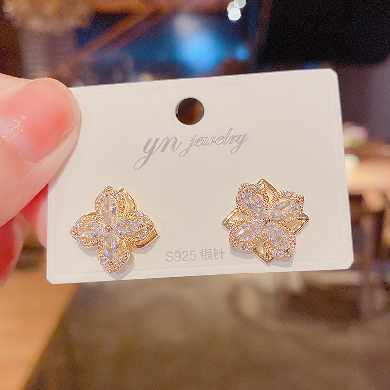 2022 autumn new temperament and fashion zircon rotatable four-leaf flower earrings female Douyin net red all-match earrings female