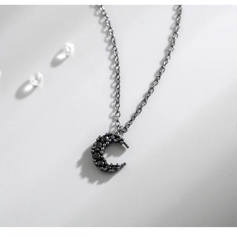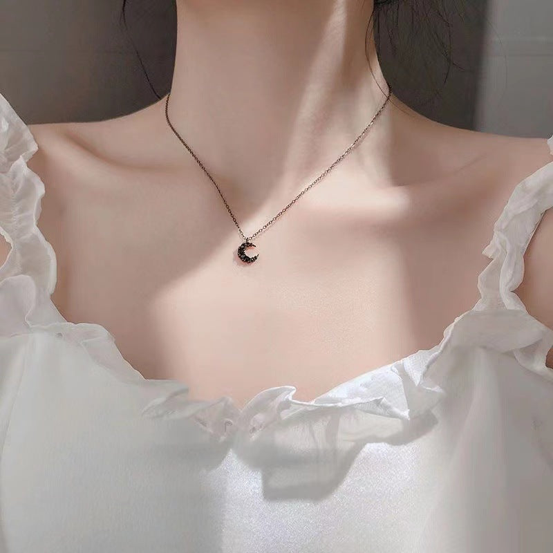 2022 Black Diamond Moon Necklace Women's Simple Personality Net Red Light Luxury Niche Ins No Fading Clavicle Chain Feminine