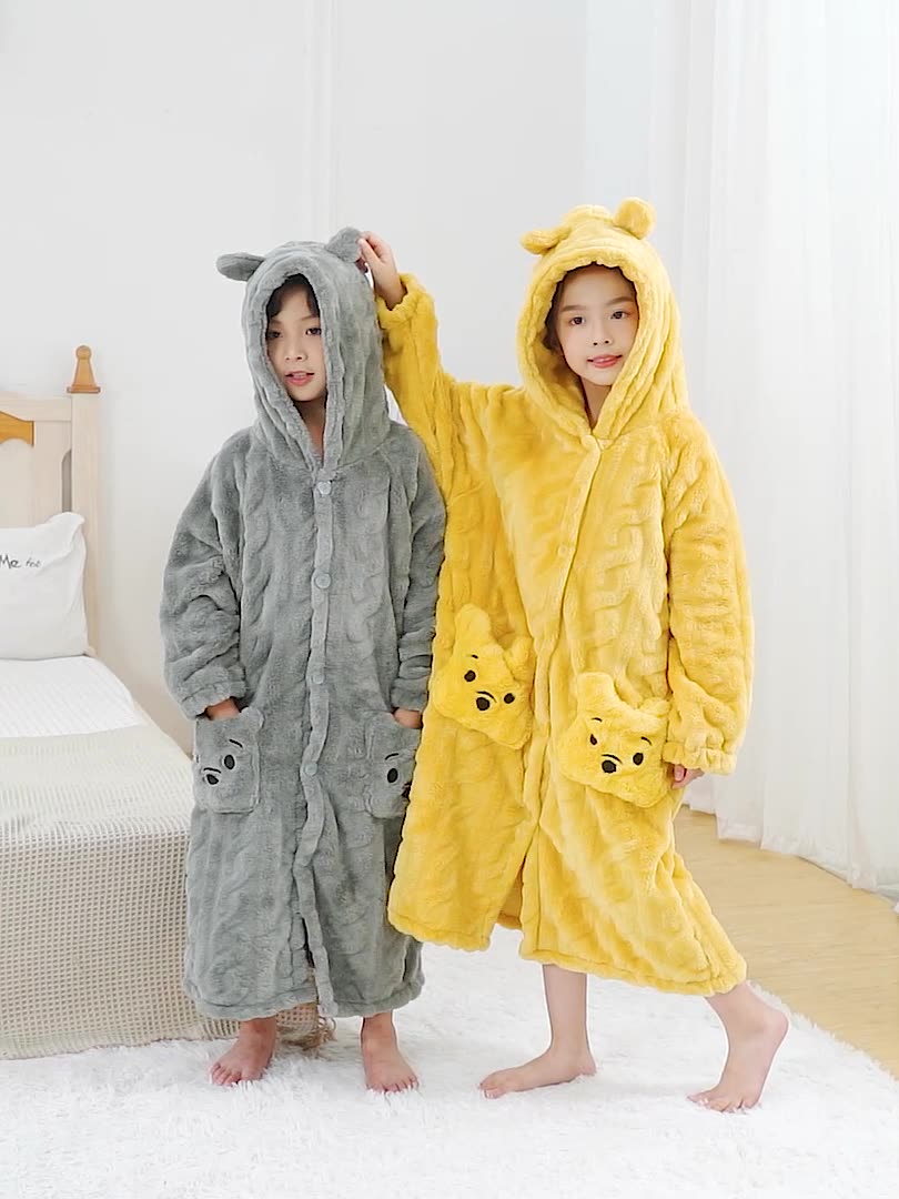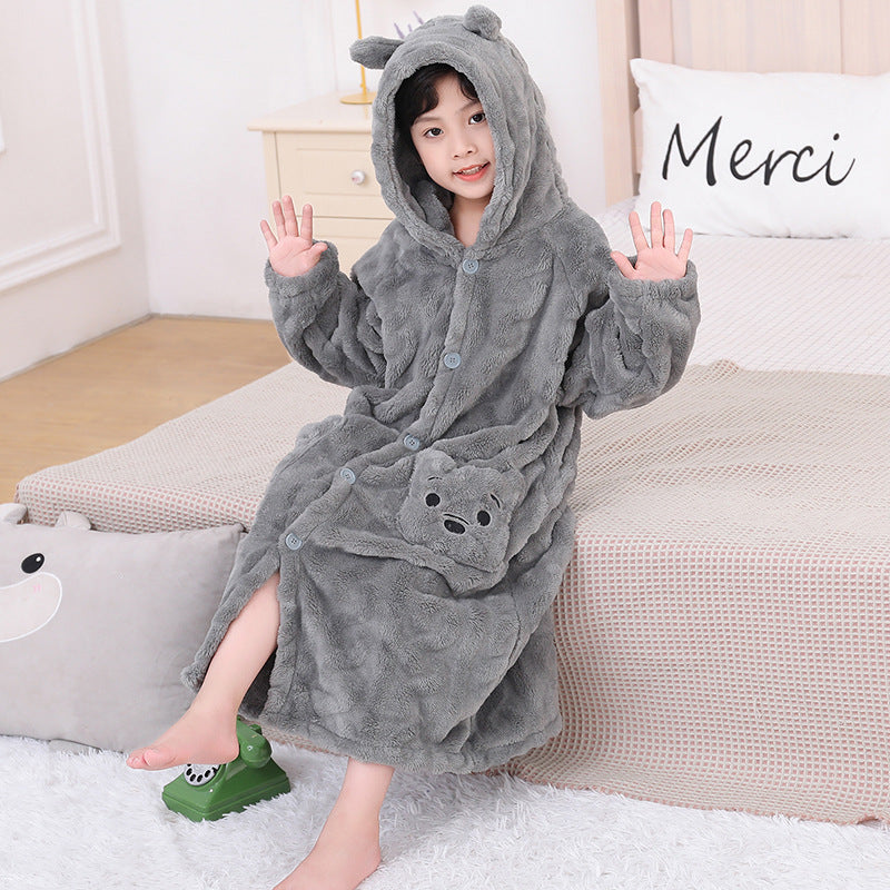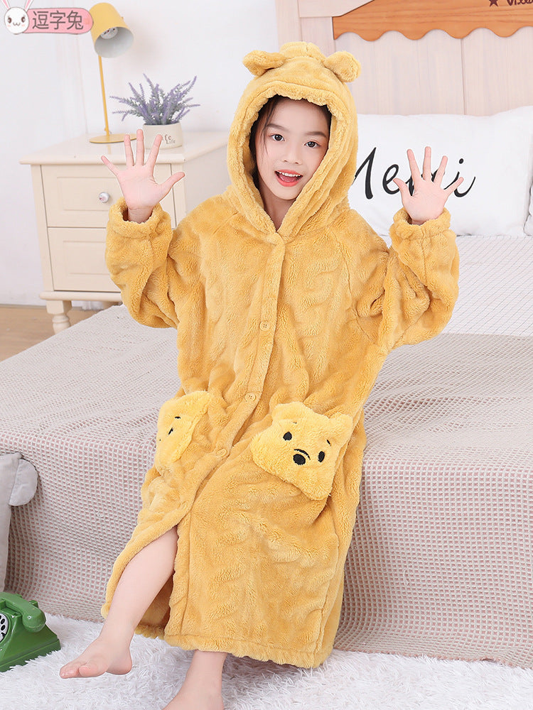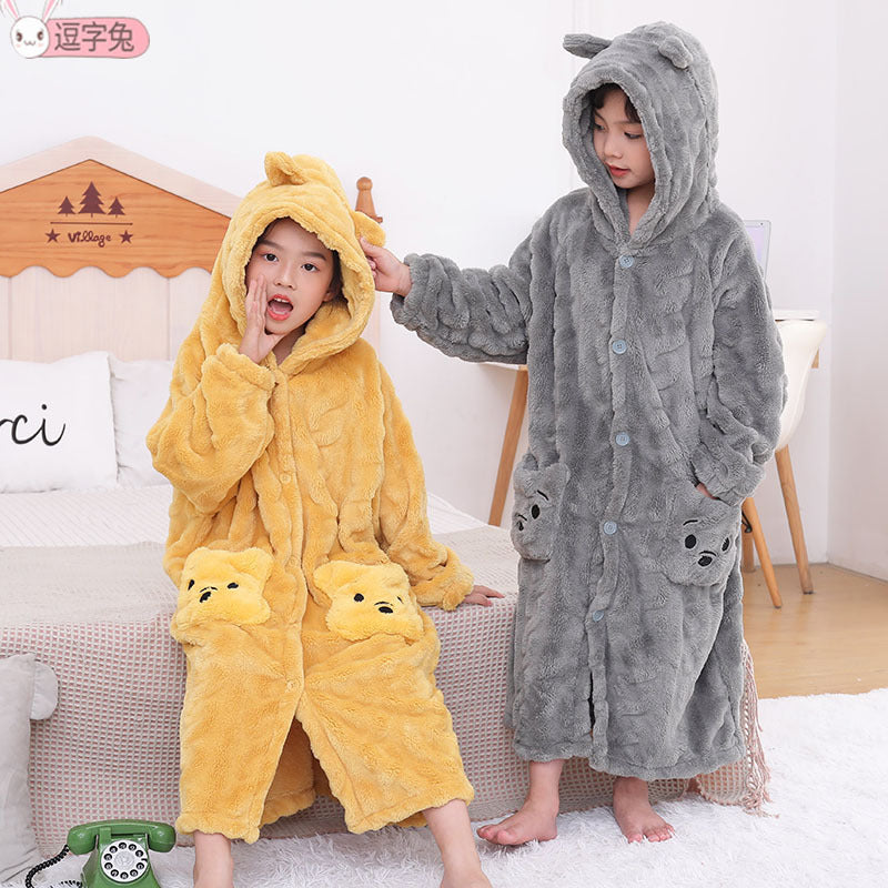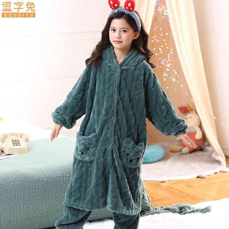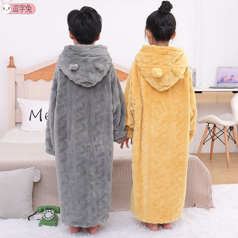 2022 children's thickened nightgown boys and girls thickened warm pajamas autumn and winter home clothes can be worn outside bathrobe