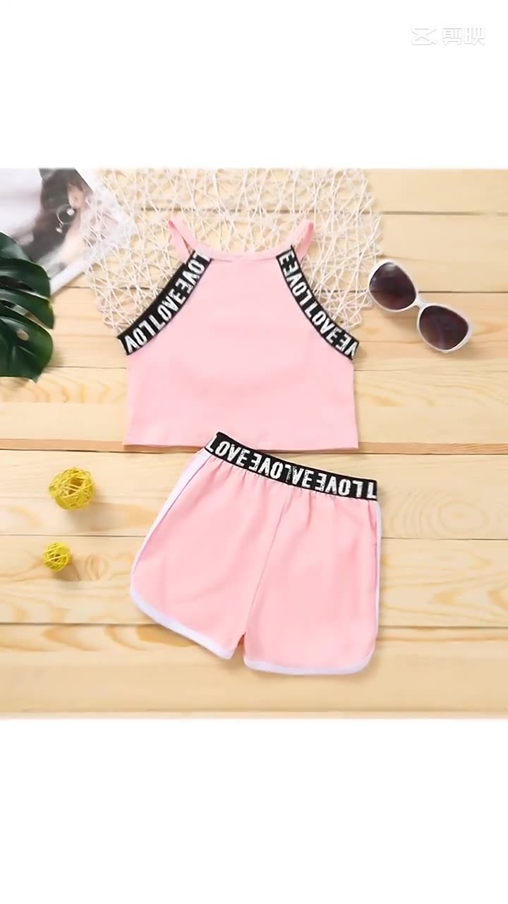 2022 Children's Treasure Girls Summer Thin Sports Suspender Set Cotton Comfortable Casual Shorts Two-piece Set Trendy