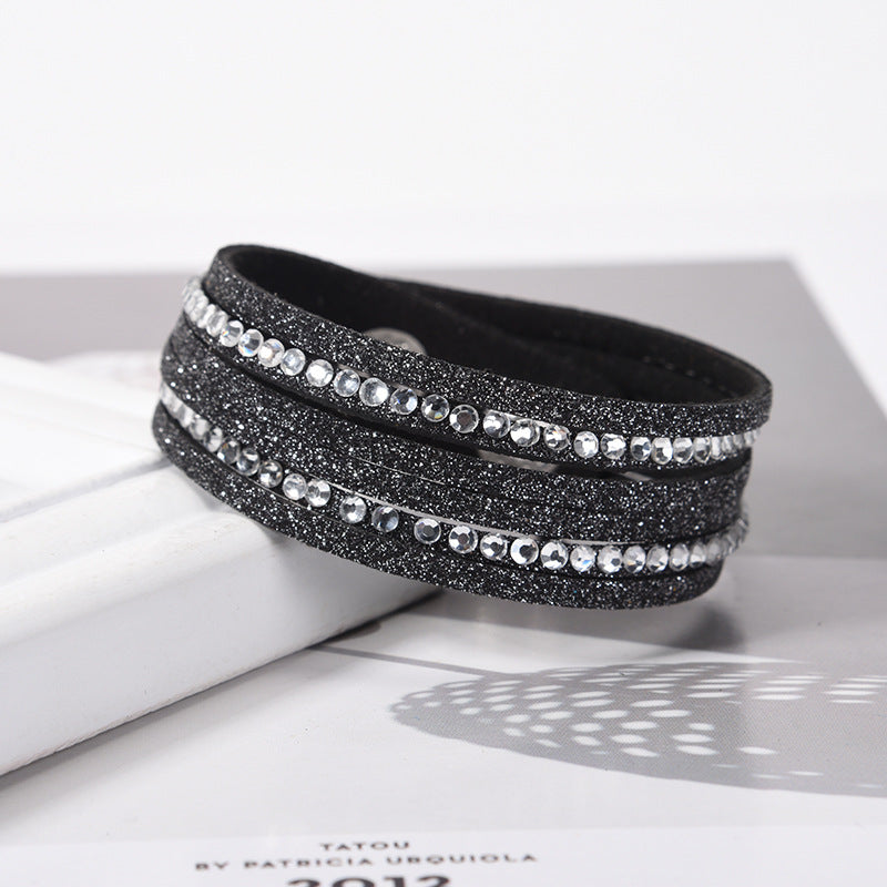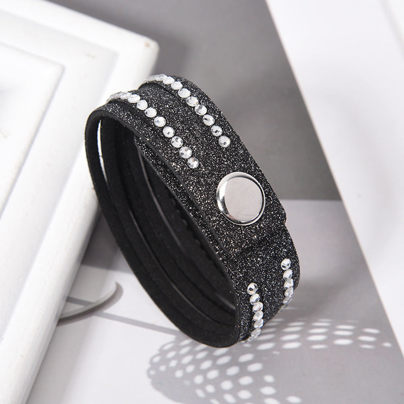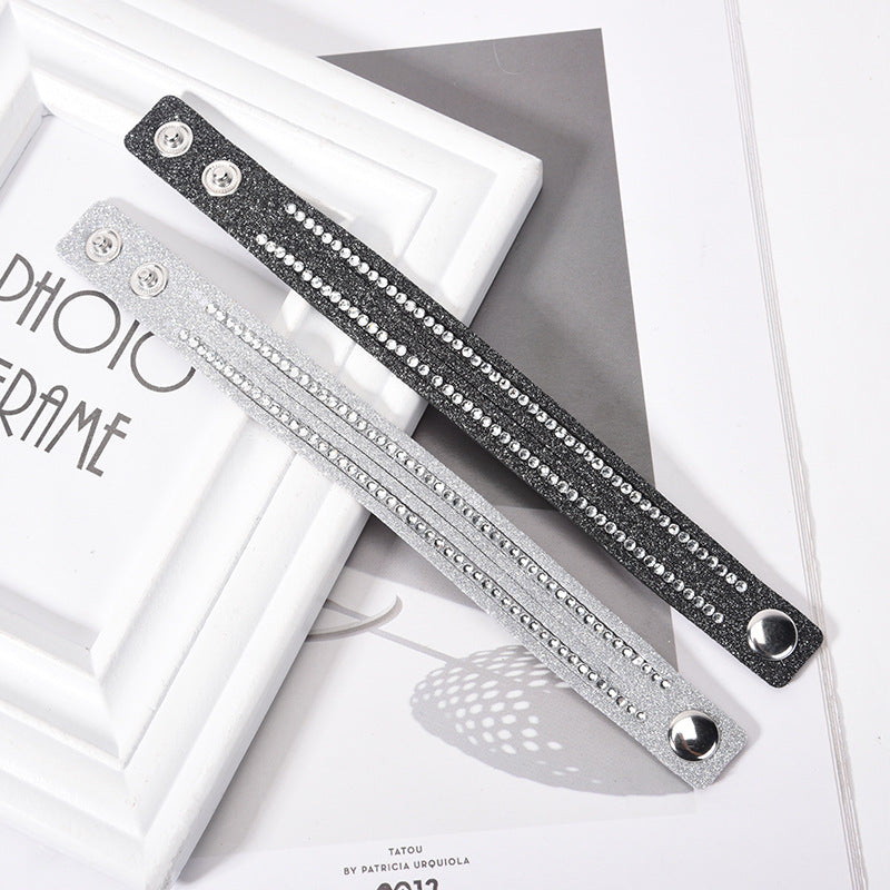2022 creative exaggerated bracelet leather velvet hot diamond bracelet multi-layer bracelet couple accessories foreign trade wholesale