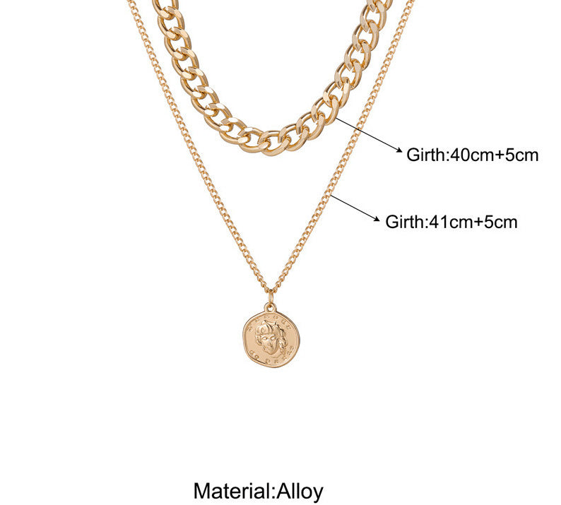 2022 cross-border hot-selling thick chain double-layer avatar necklace geometric shape pendant alloy clavicle chain women's necklace C194