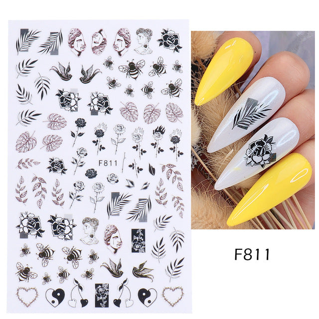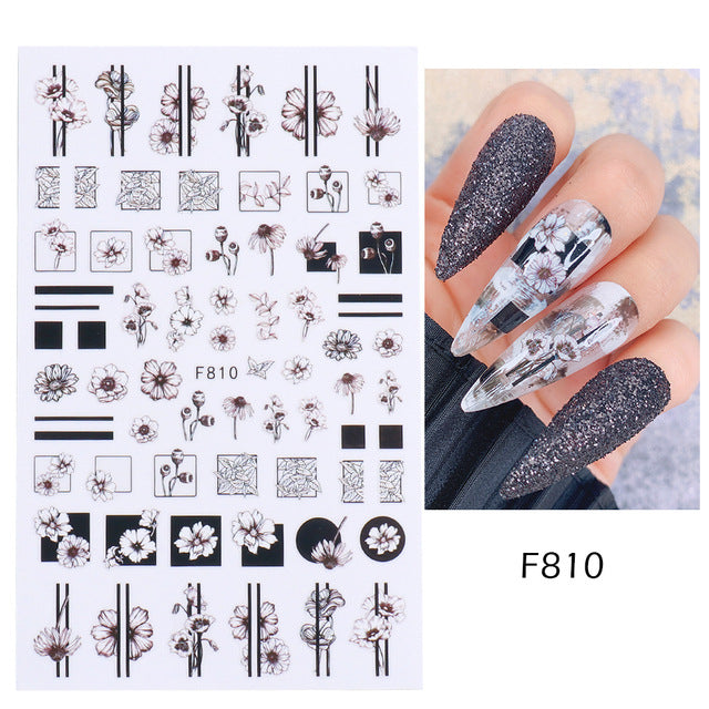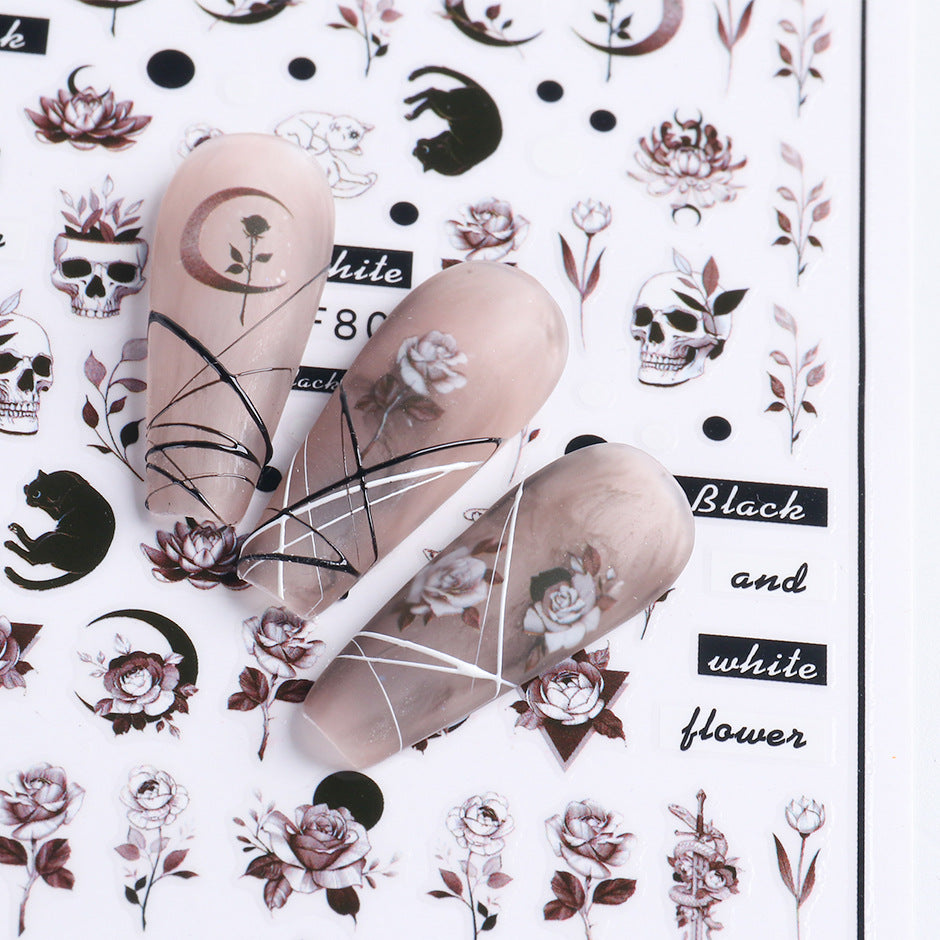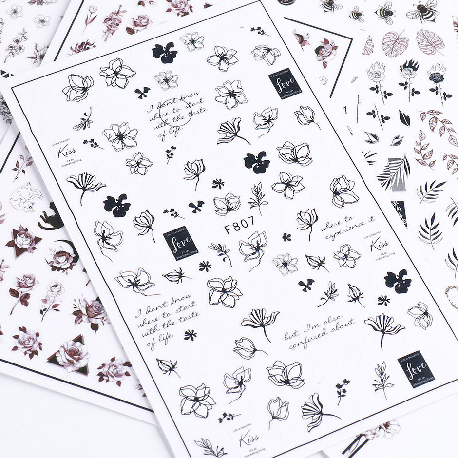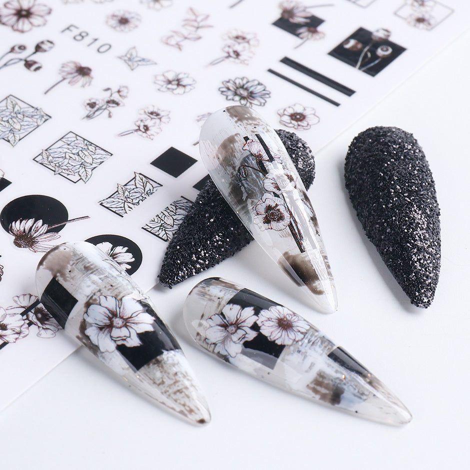 2022 cross-border new manicure stickers ins autumn and winter series black and white flowers plain hand-painted adhesive nail stickers