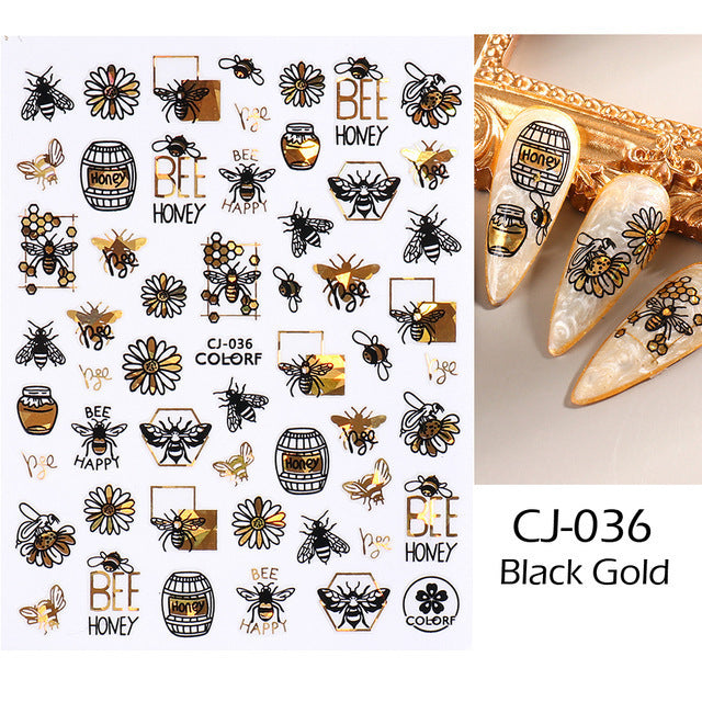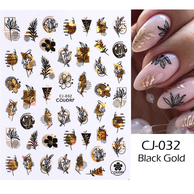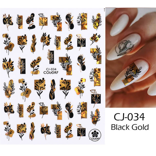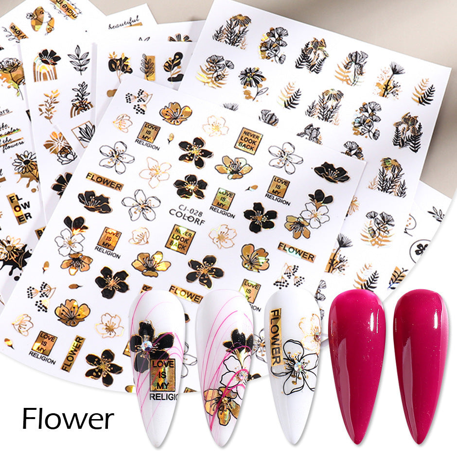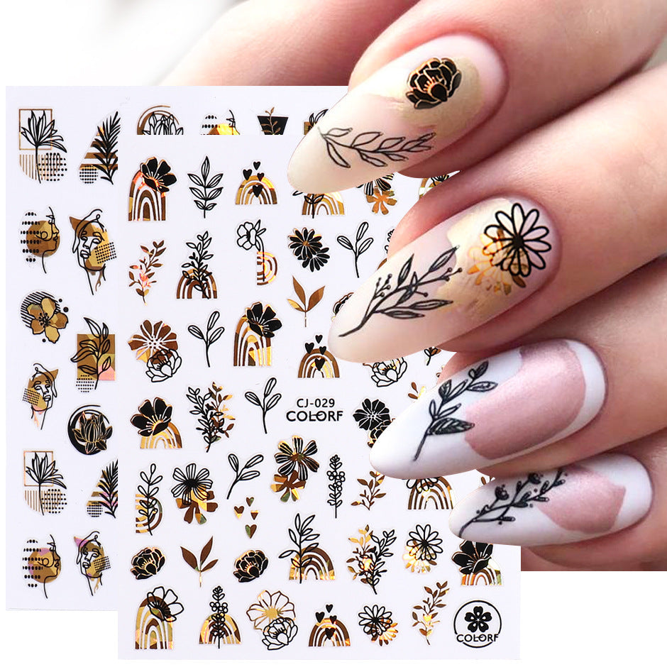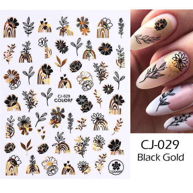 2022 cross-border new manicure stickers ins black bronzing animals and plants flowers love English series adhesive stickers