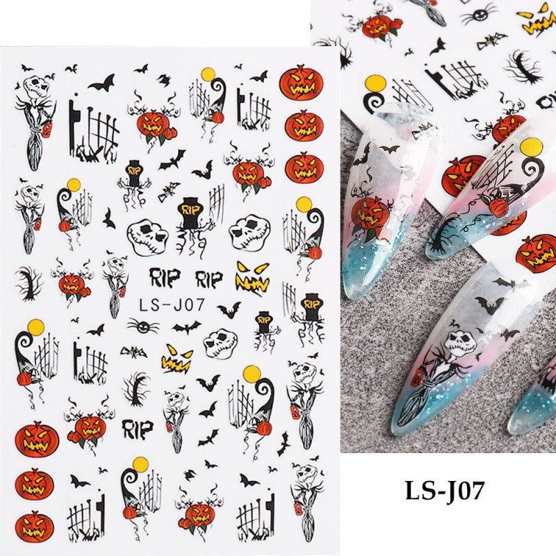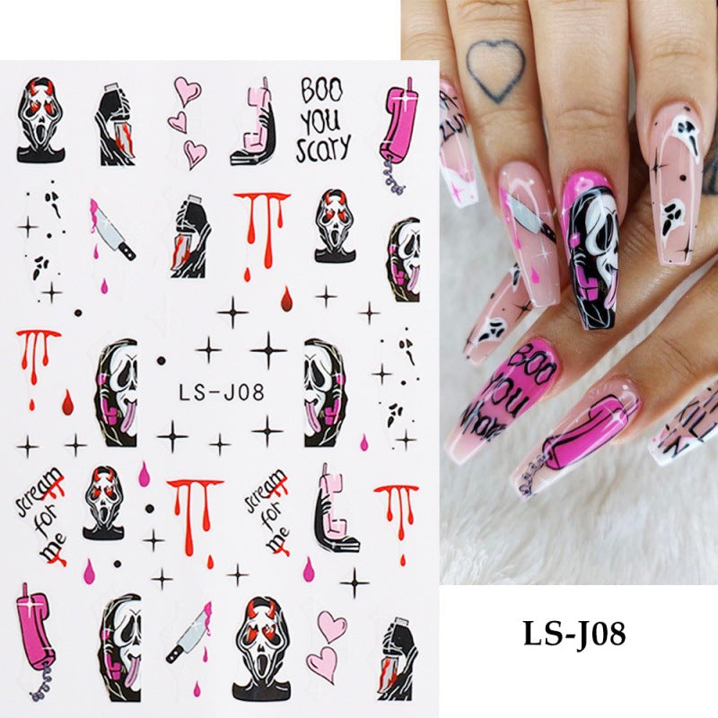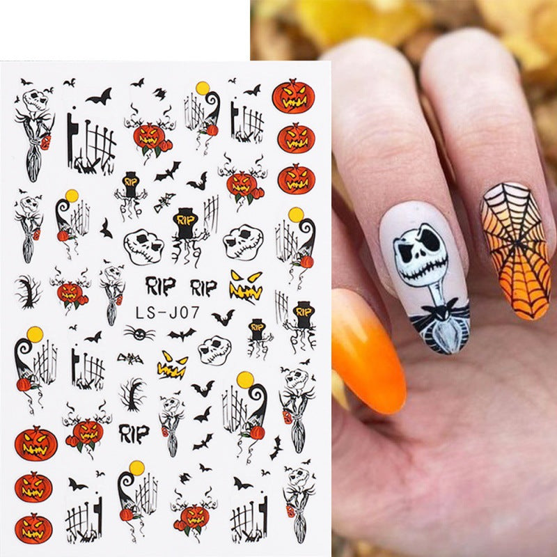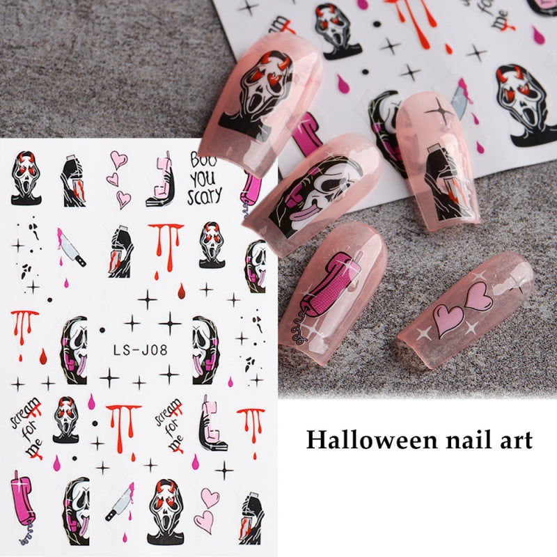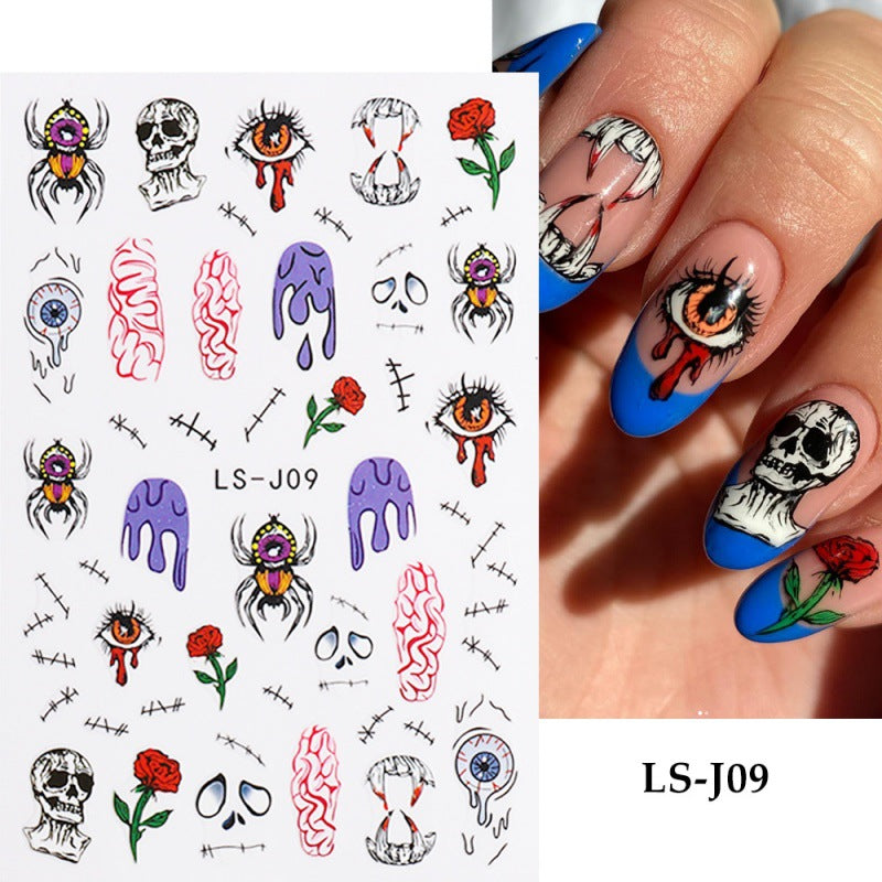 2022 cross-border new nail art stickers Halloween evil pumpkin spider vampire adhesive nail stickers nail