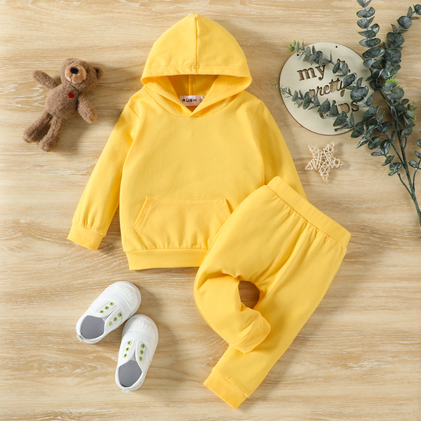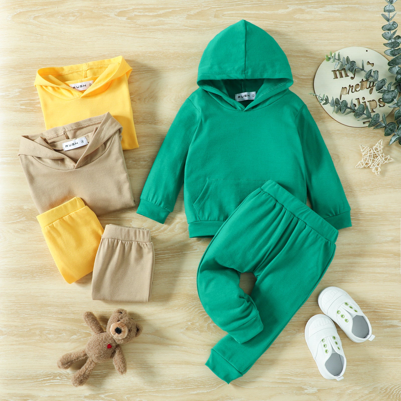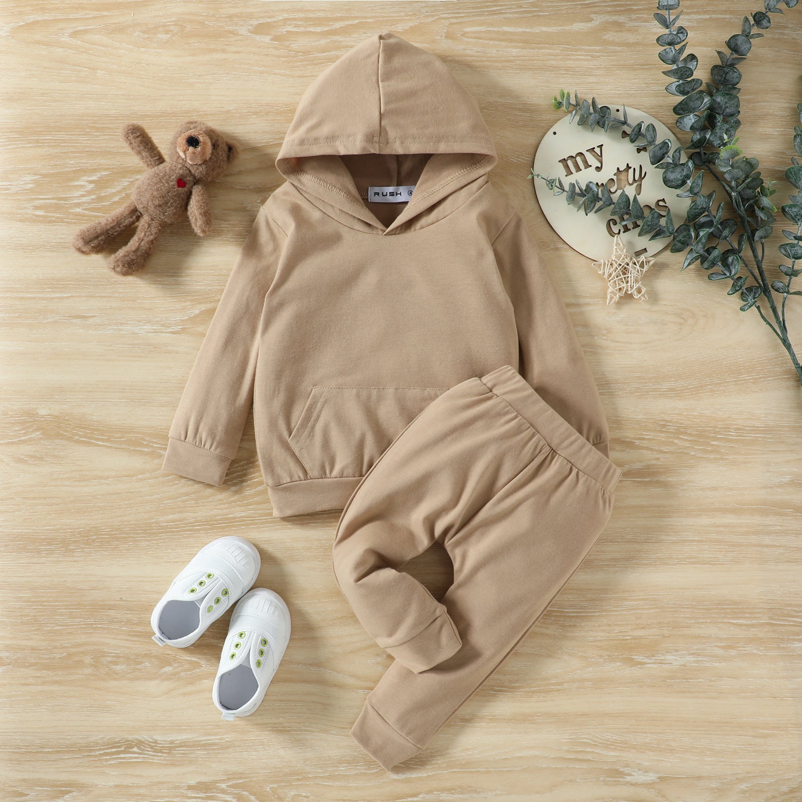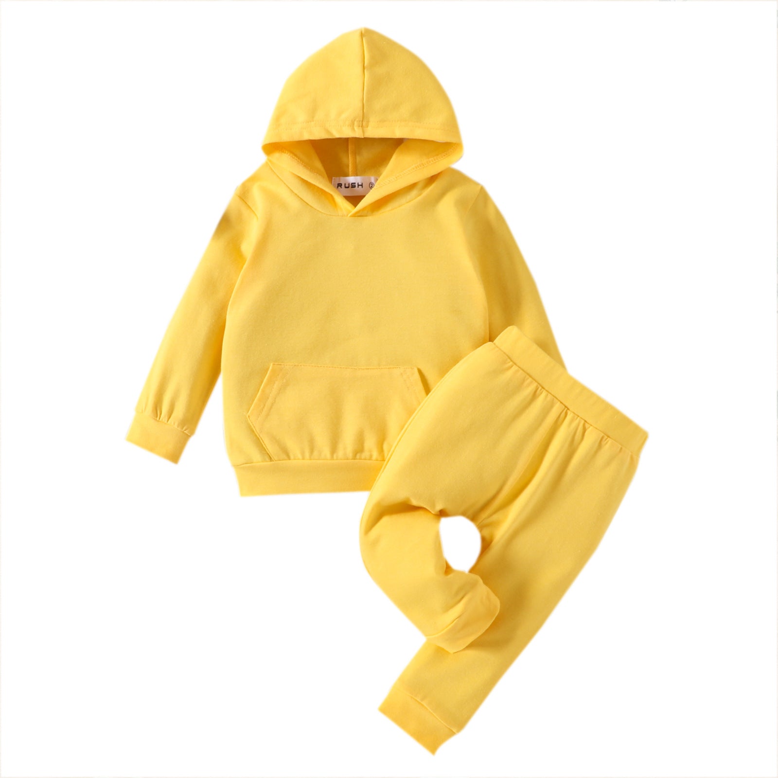 2022 European and American foreign trade small and medium boys sports style children's clothing wholesale autumn new solid color hooded sweater suit