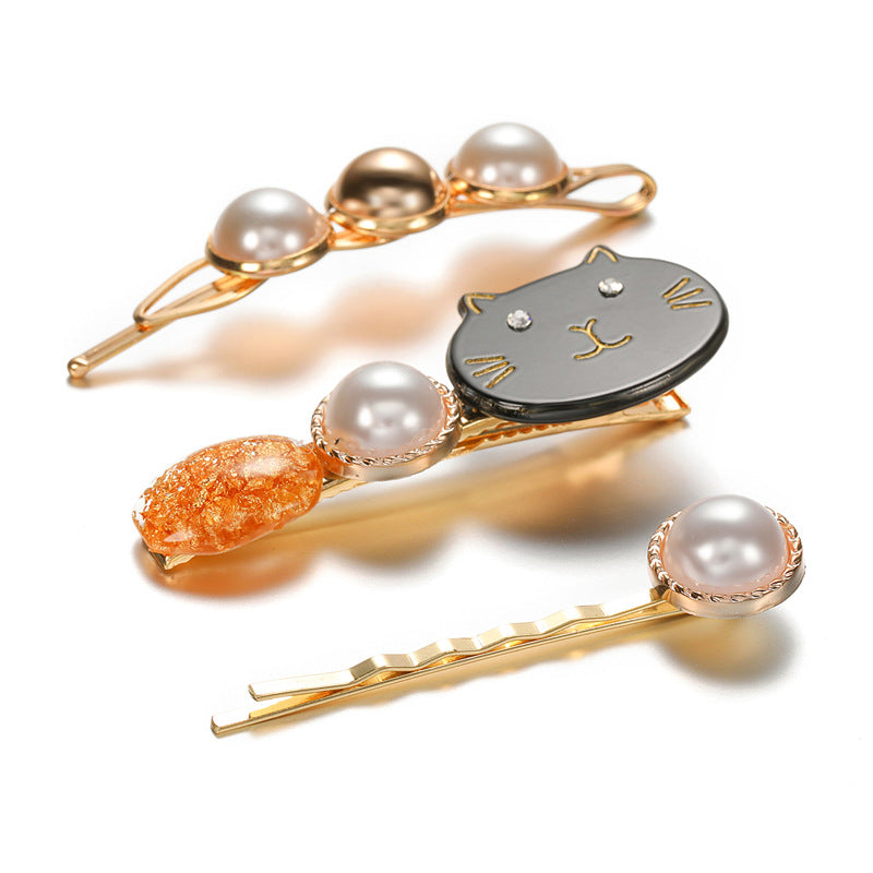 2022 European and American Style Hair Clip Set Fashionable Simple Side Clip Atmospheric Smiley Cat Face Decorative Alloy Clip