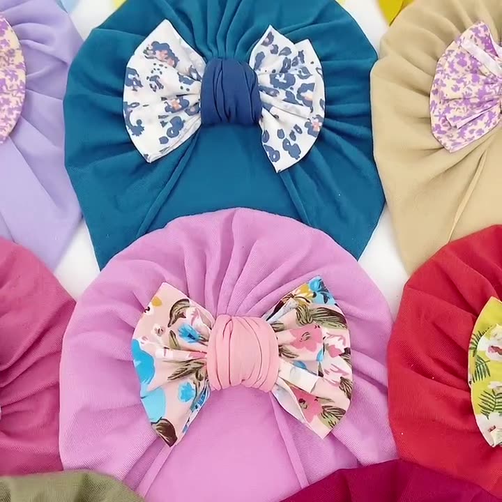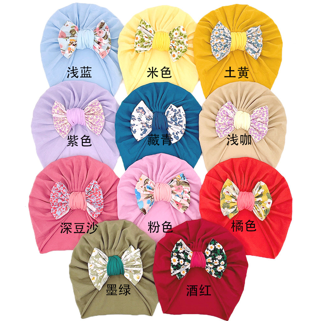 2022 European and American style spring children's floral bow thin hat baby non-skin knotted hat Baby hat