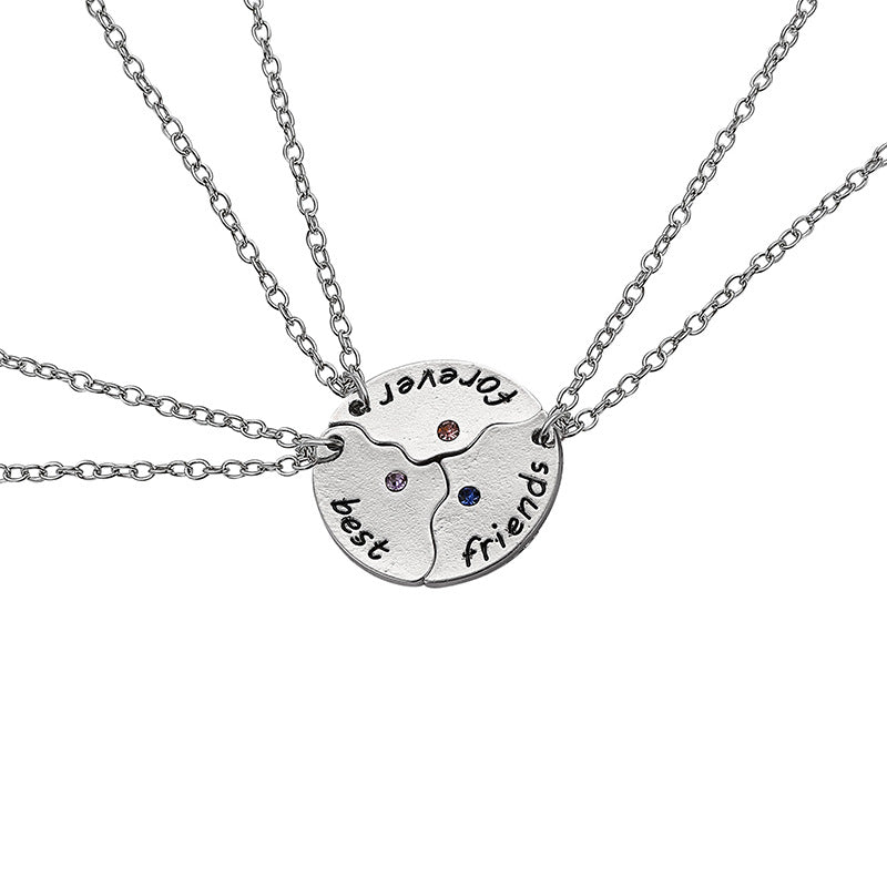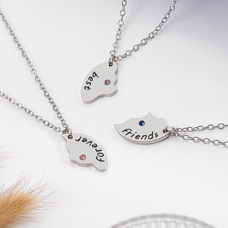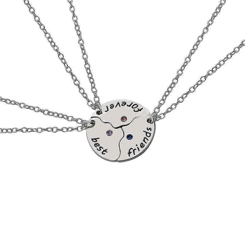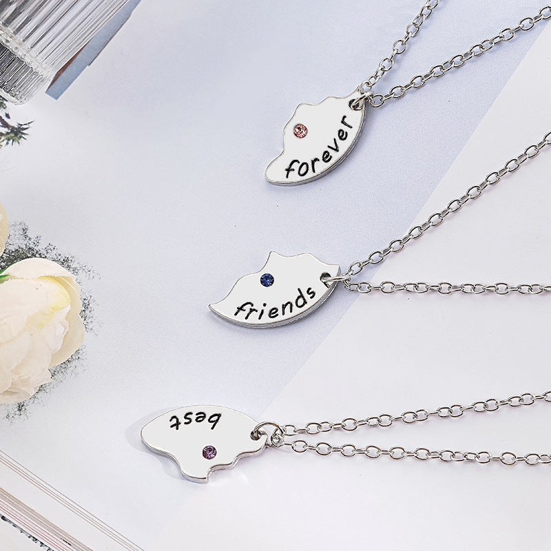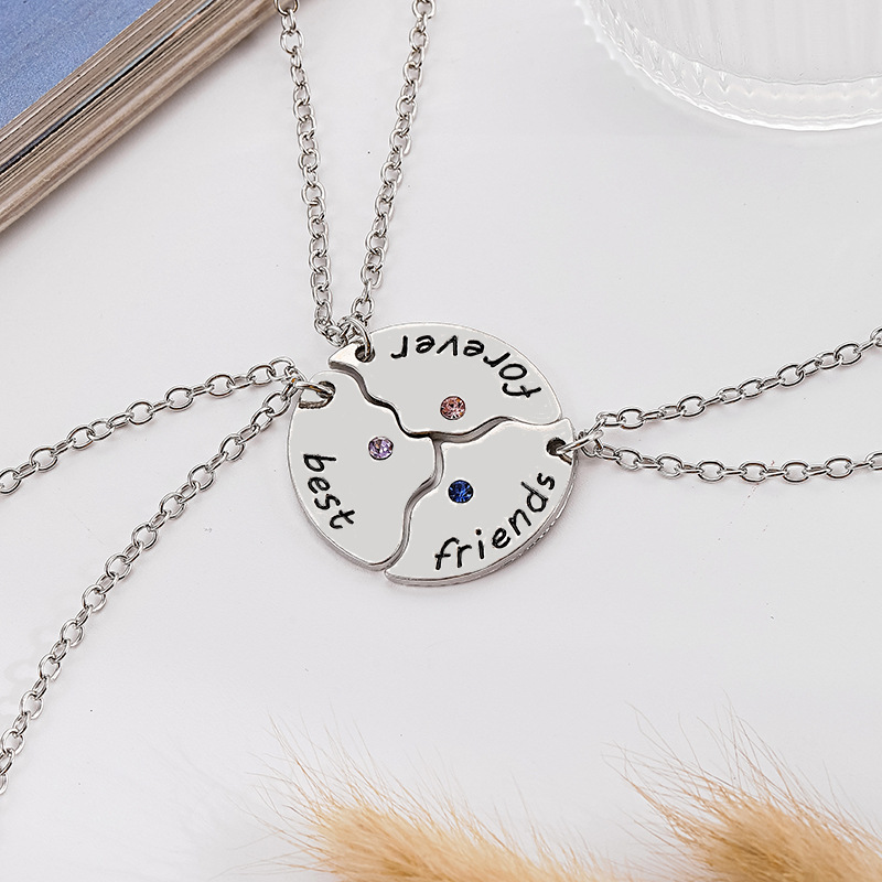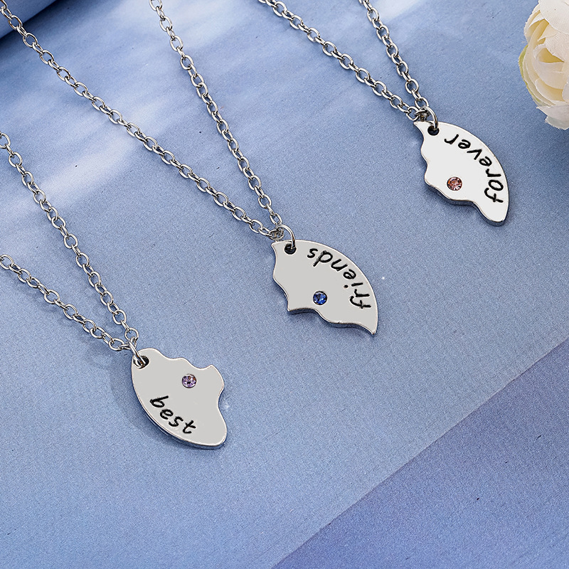 2022 fashion new girlfriend three-person splicing necklace bestfriend alloy pendant cross-border hot sale wholesale