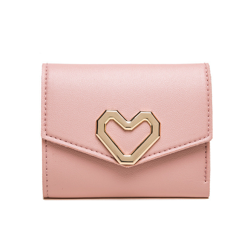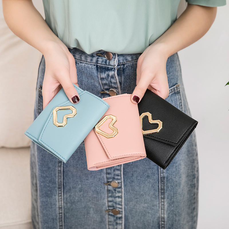 2022 fashion short wallet female Korean version heart-shaped small wallet simple square tri-fold wallet ladies coin purse