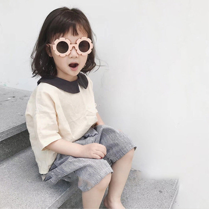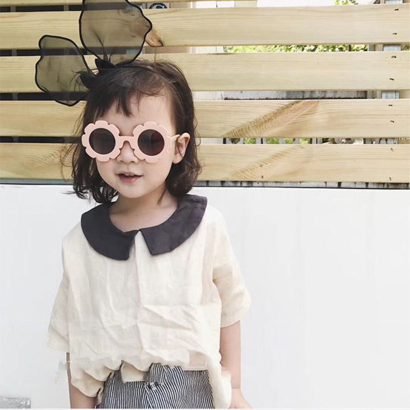 2022 fashion sunflower children's sunglasses Korean cartoon round frame jelly color petal sunshade sunglasses