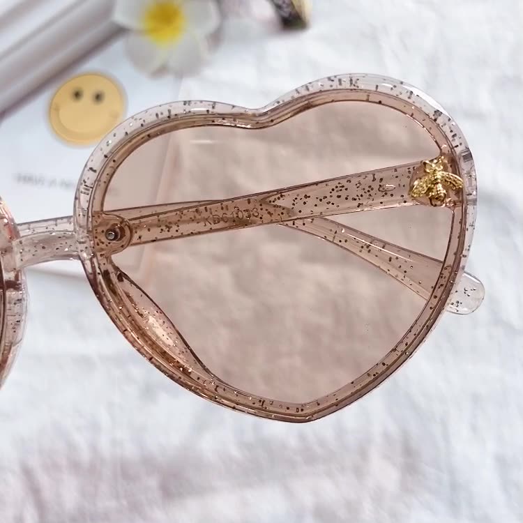 2022 Glitter Sunglasses Children's Cartoon Little Bee Sunglasses Girls Cute Glasses Heart Sunglasses Fashion