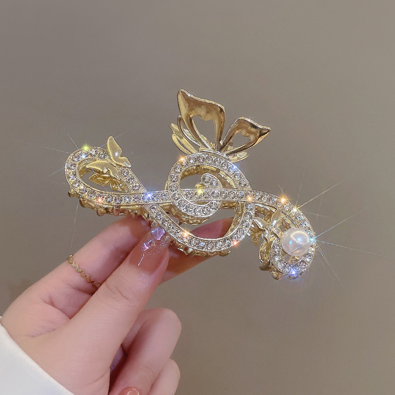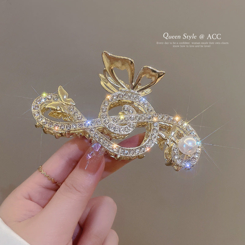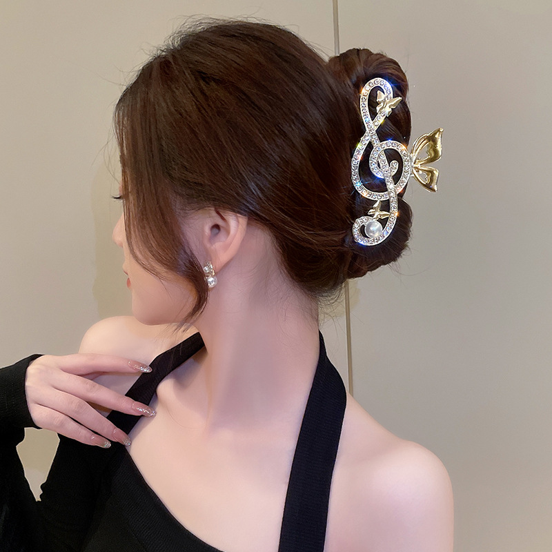 2022 hot rhinestone note hair clip women's hair back head clip high-end shark clip hair clip