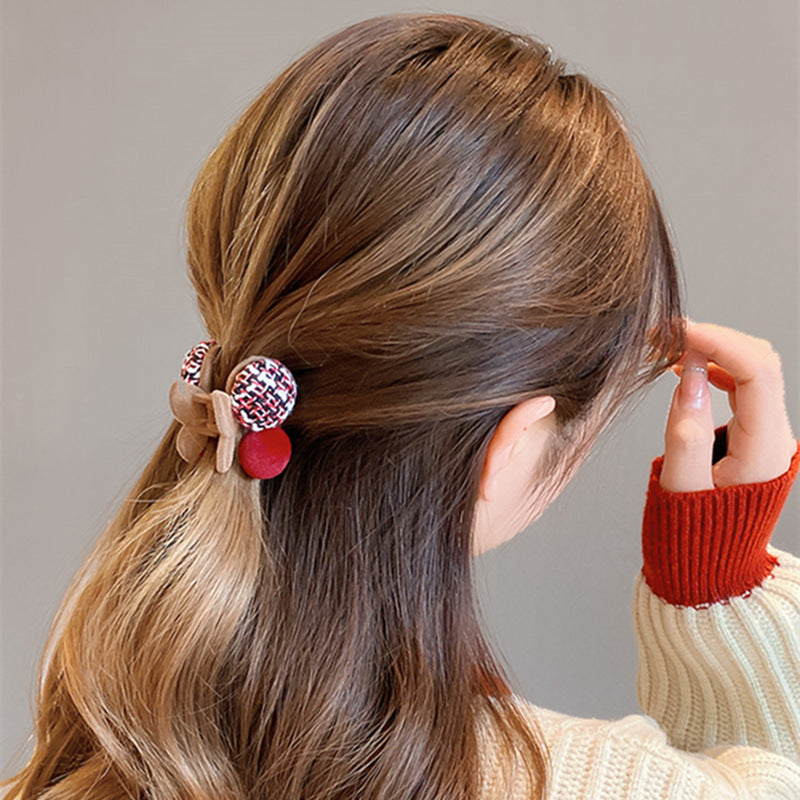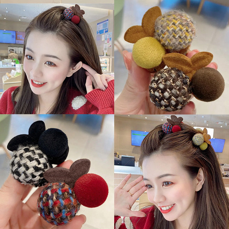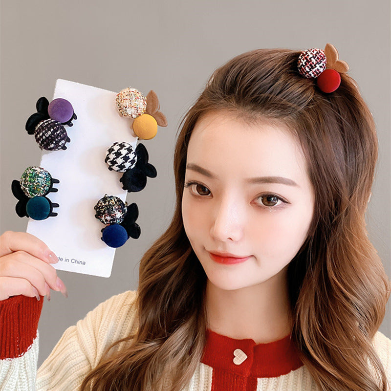 2022 Internet celebrity autumn and winter new cherry plush small clip female side bangs clip exquisite headdress leopard print clip