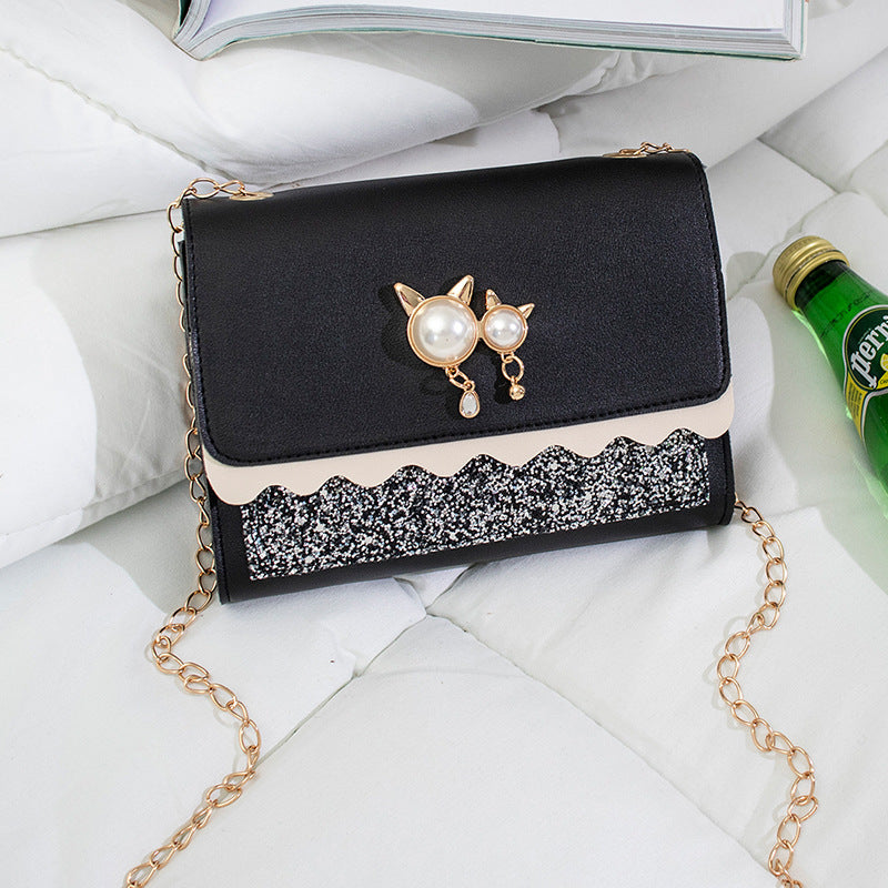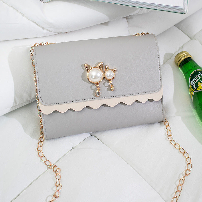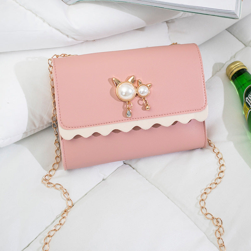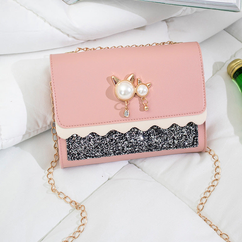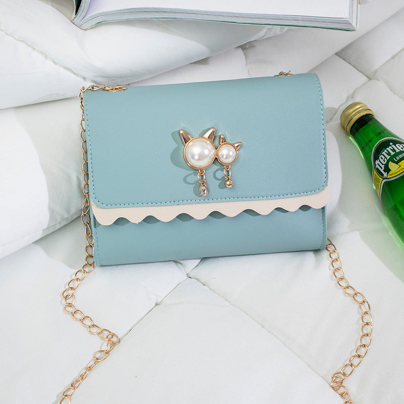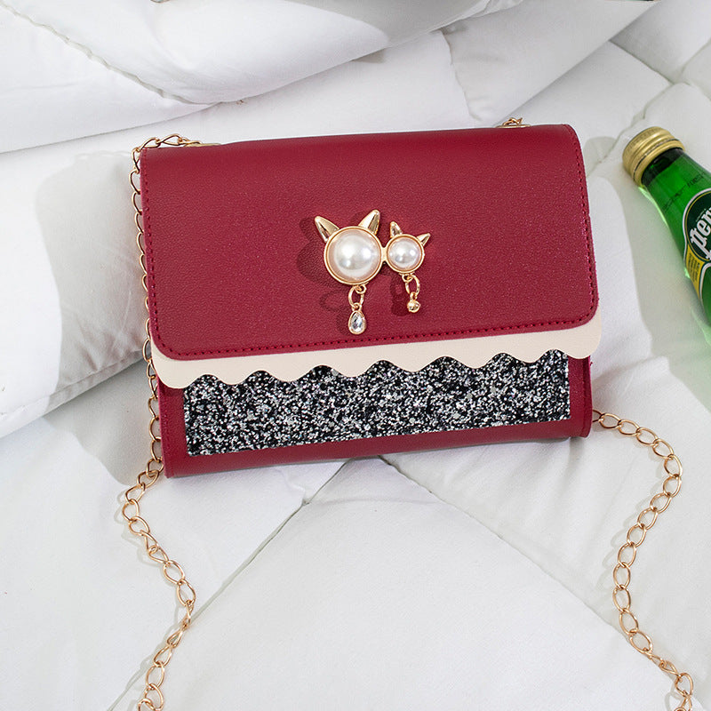 2022 Japan and South Korea new women's bag casual small square bag shoulder Messenger bag small fresh fluorescent mobile phone bag chain small bag