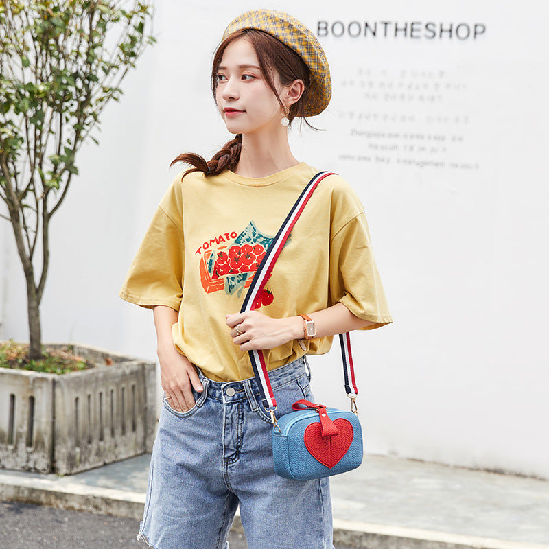 2022 Japanese and Korean new women's bag casual small square bag shoulder bag Messenger bag zipper mobile phone bag pu heart-shaped small bag