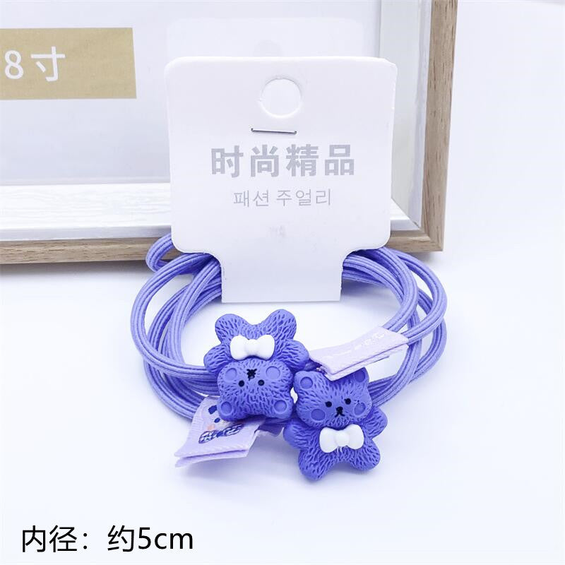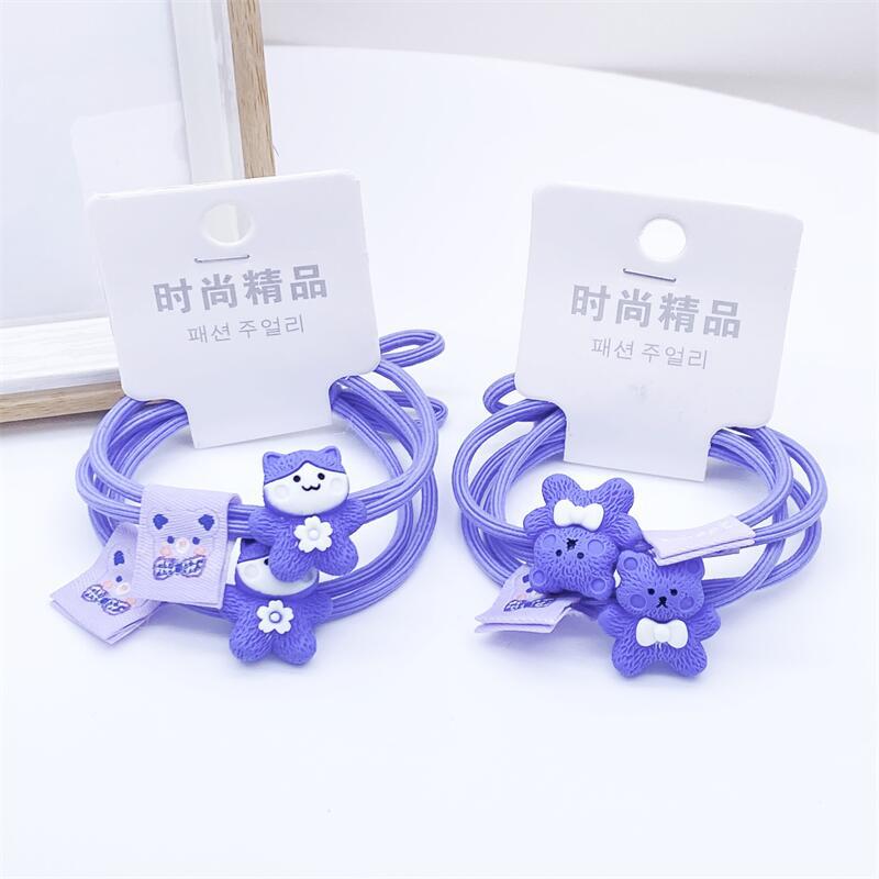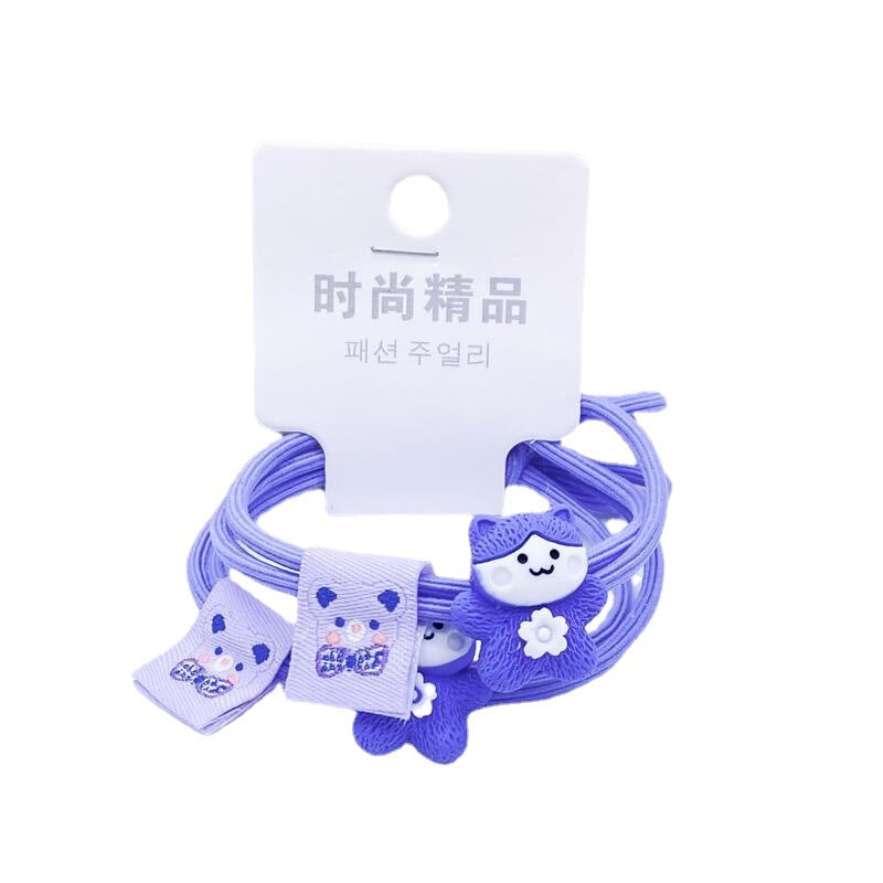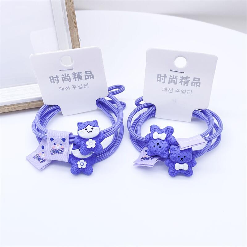 2022 Korean Girls Hair Accessories Periwinkle Blue Hair Ropes 2 Card-mounted Head Ropes Cartoon Animal Cloth Label Rubber Bands