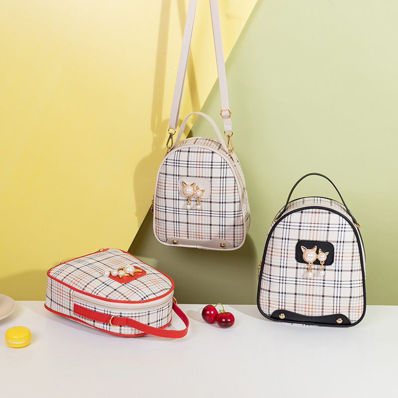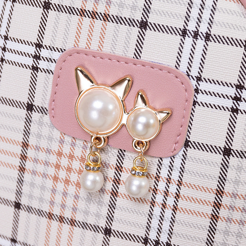 2022 Korean version of women's Scottish plaid small backpack foreign trade wholesale autumn and winter new product cat pearl mobile phone small bag