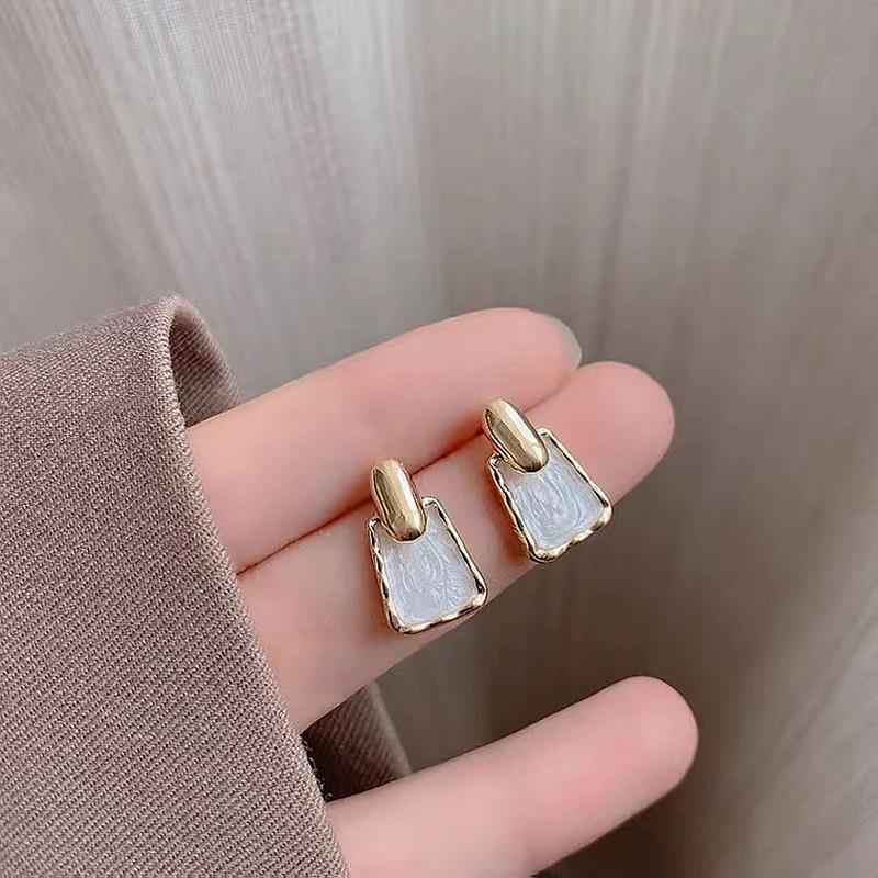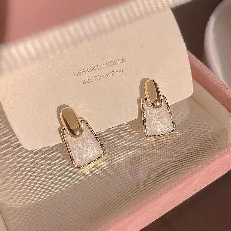 2022 Korean white camellia earrings women's summer niche design silver needle single diamond stud earrings Hepburn style earrings