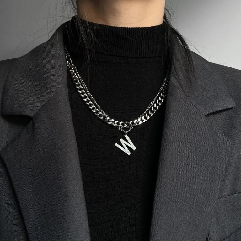 2022 new 26 letter W pendant sweater chain necklace female trendy ins hip-hop sweater chain decorative accessories male
