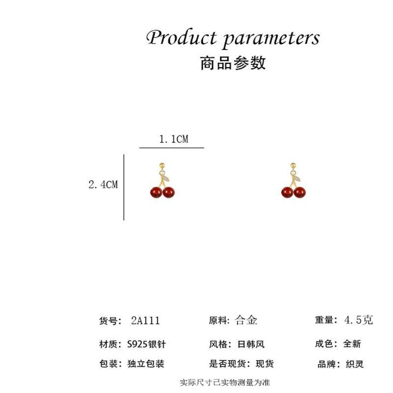 2022 new 925 silver red cherry earrings simple and compact temperament versatile ins style high-end ear accessories