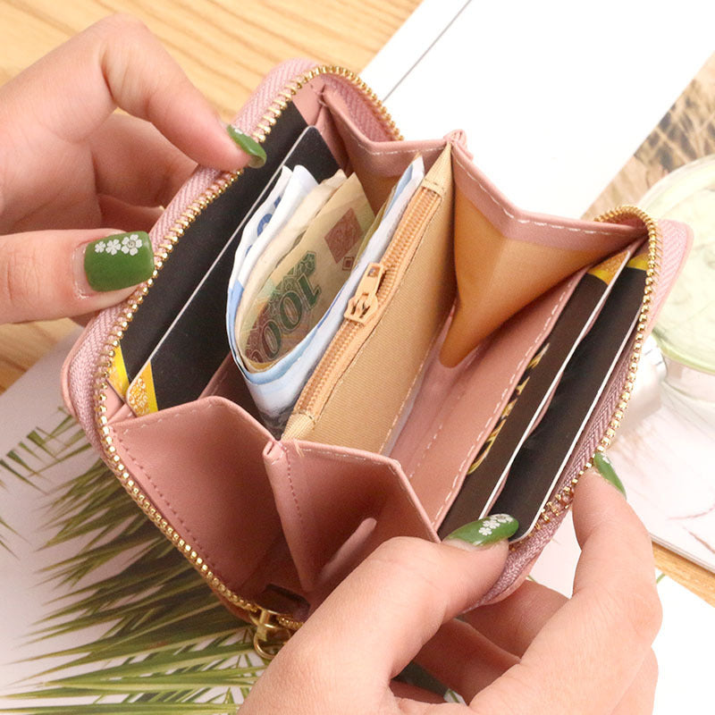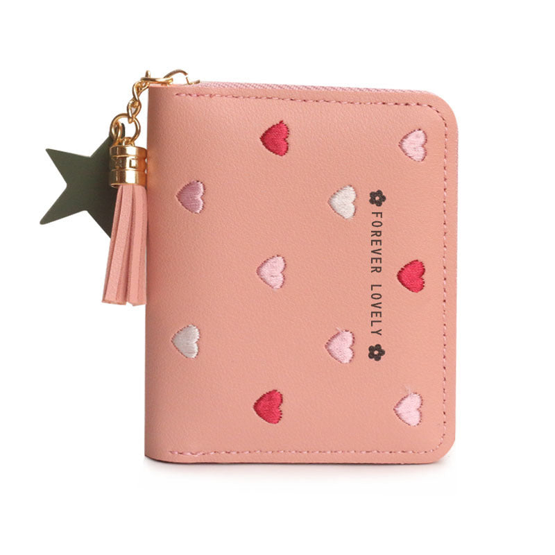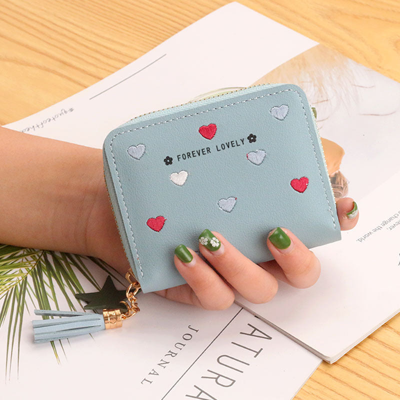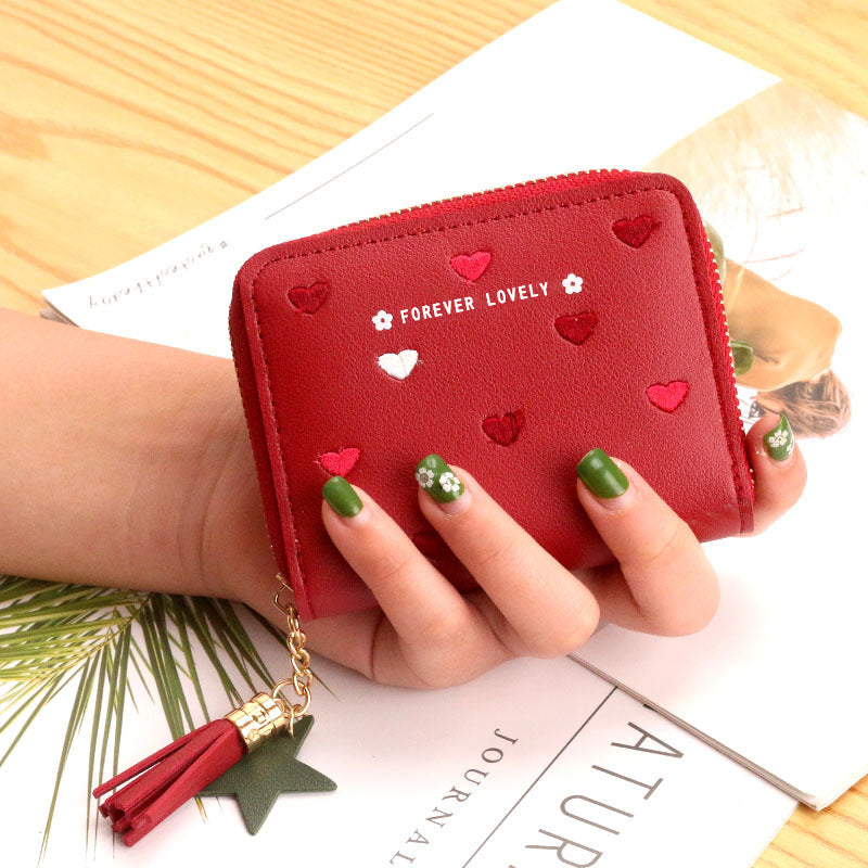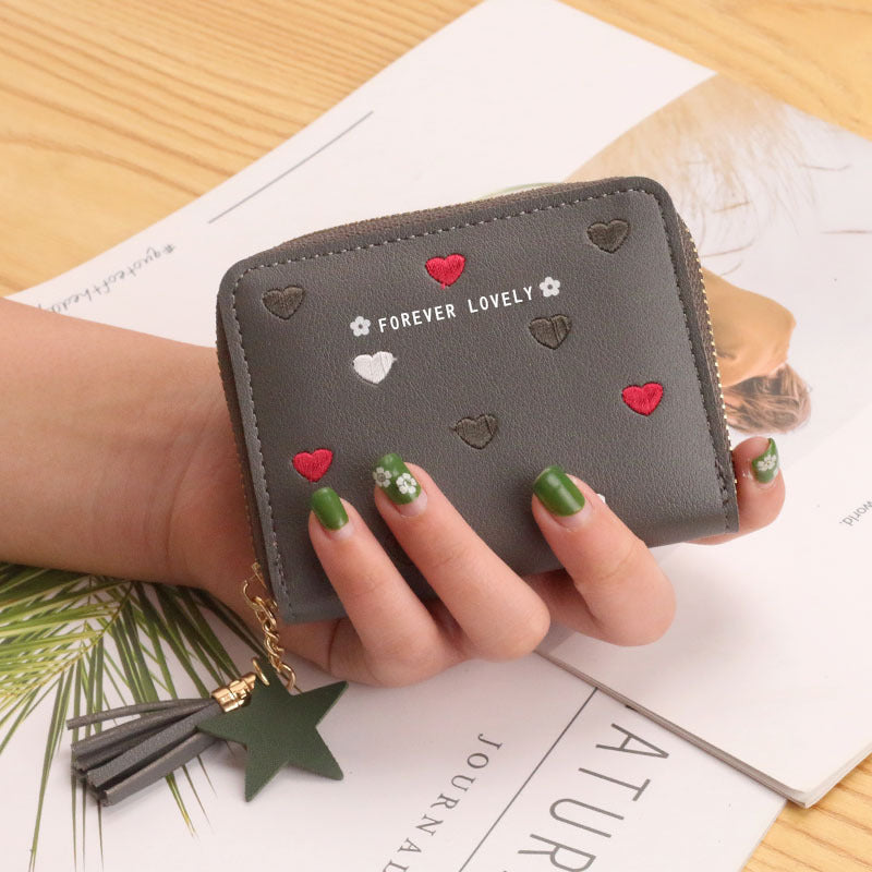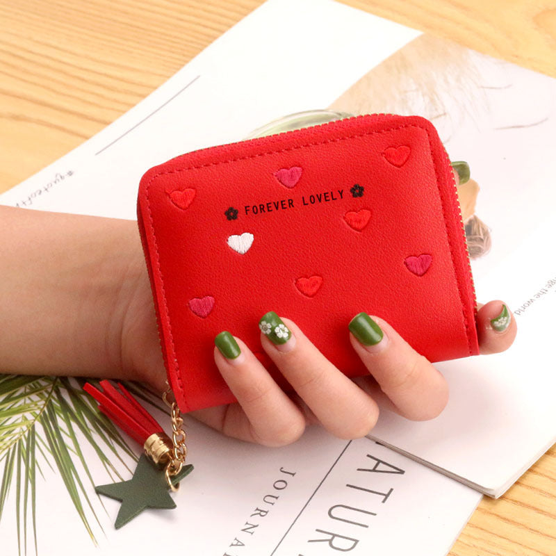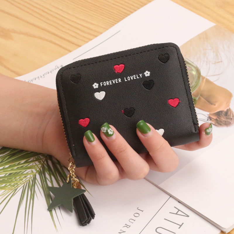 2022 new all-match women's bag embroidery cute schoolgirl zipper short wallet fashion clutch coin purse