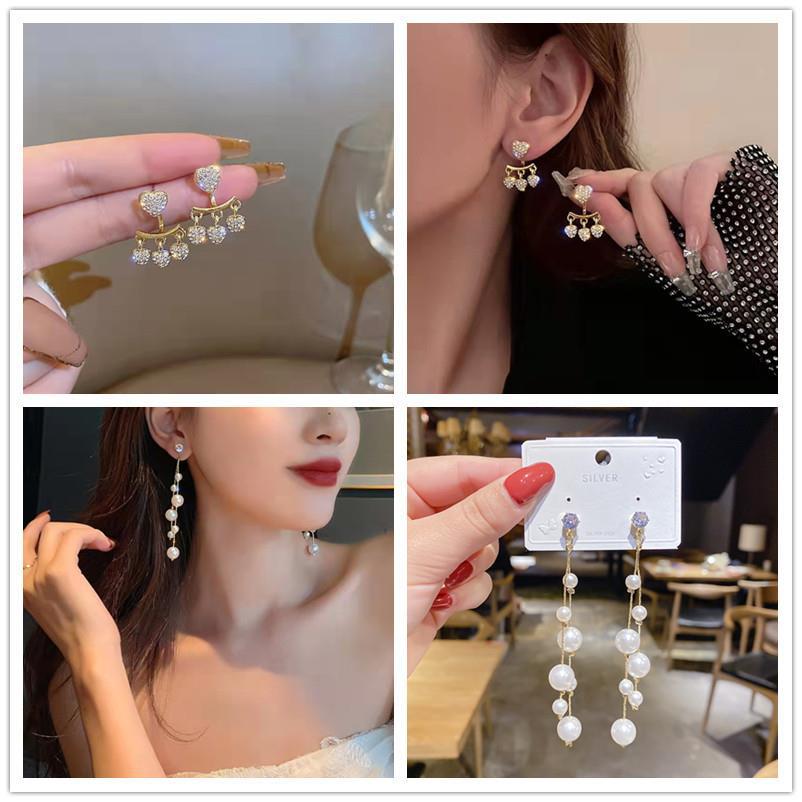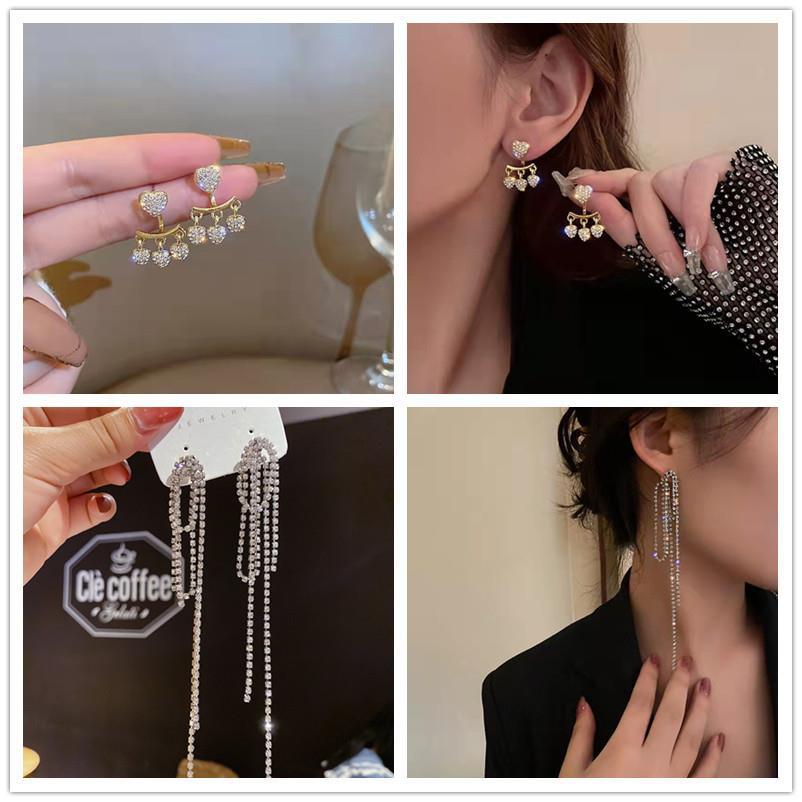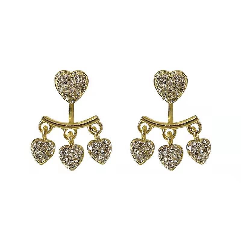 2022 New Arrival Heart Earrings Tassels Front and Back Buckle Design Stylish Fashion Earrings Temperament Small and Versatile Ear Jewelry Women