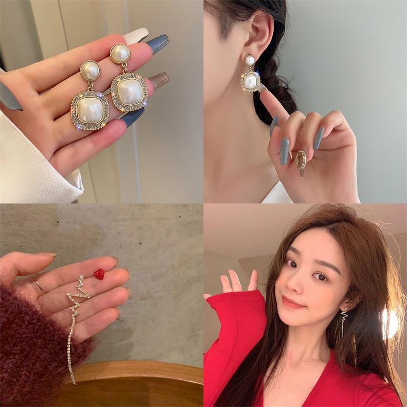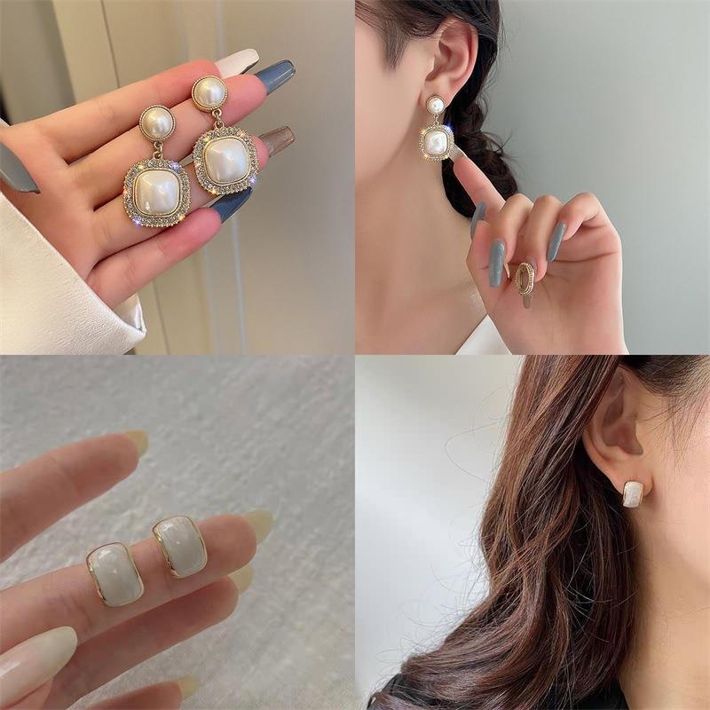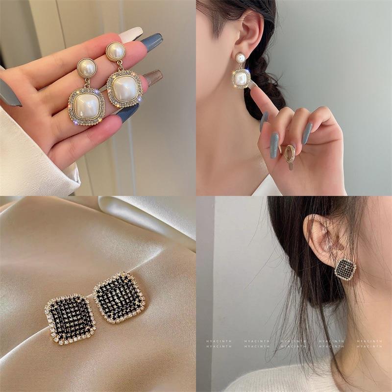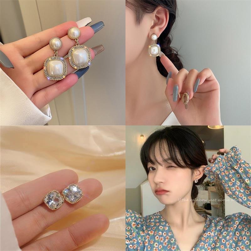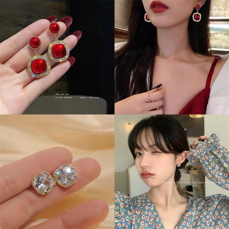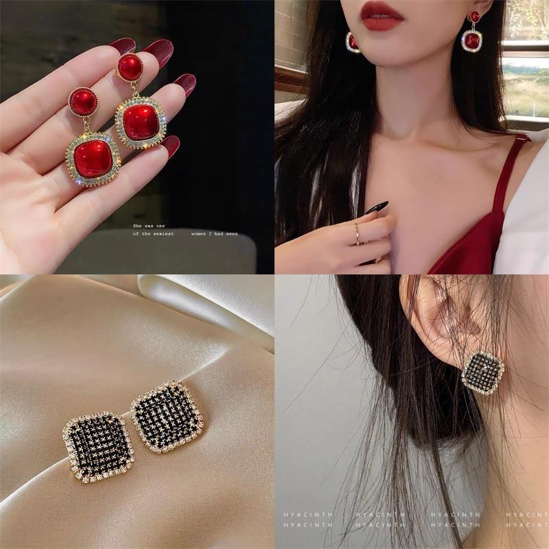 2022 New Arrivals Light Luxury Square Rhinestone Earrings Temperament Versatile Ear Studs Simple Fashion Design Ear Jewelry Women