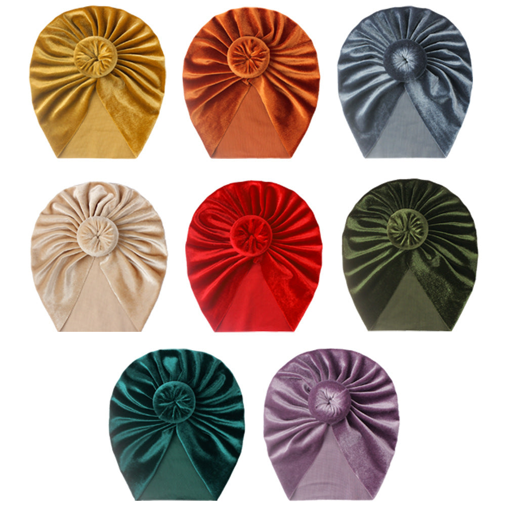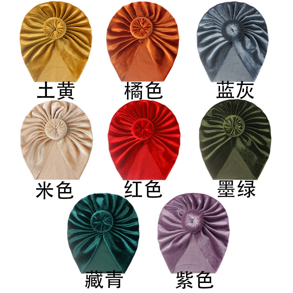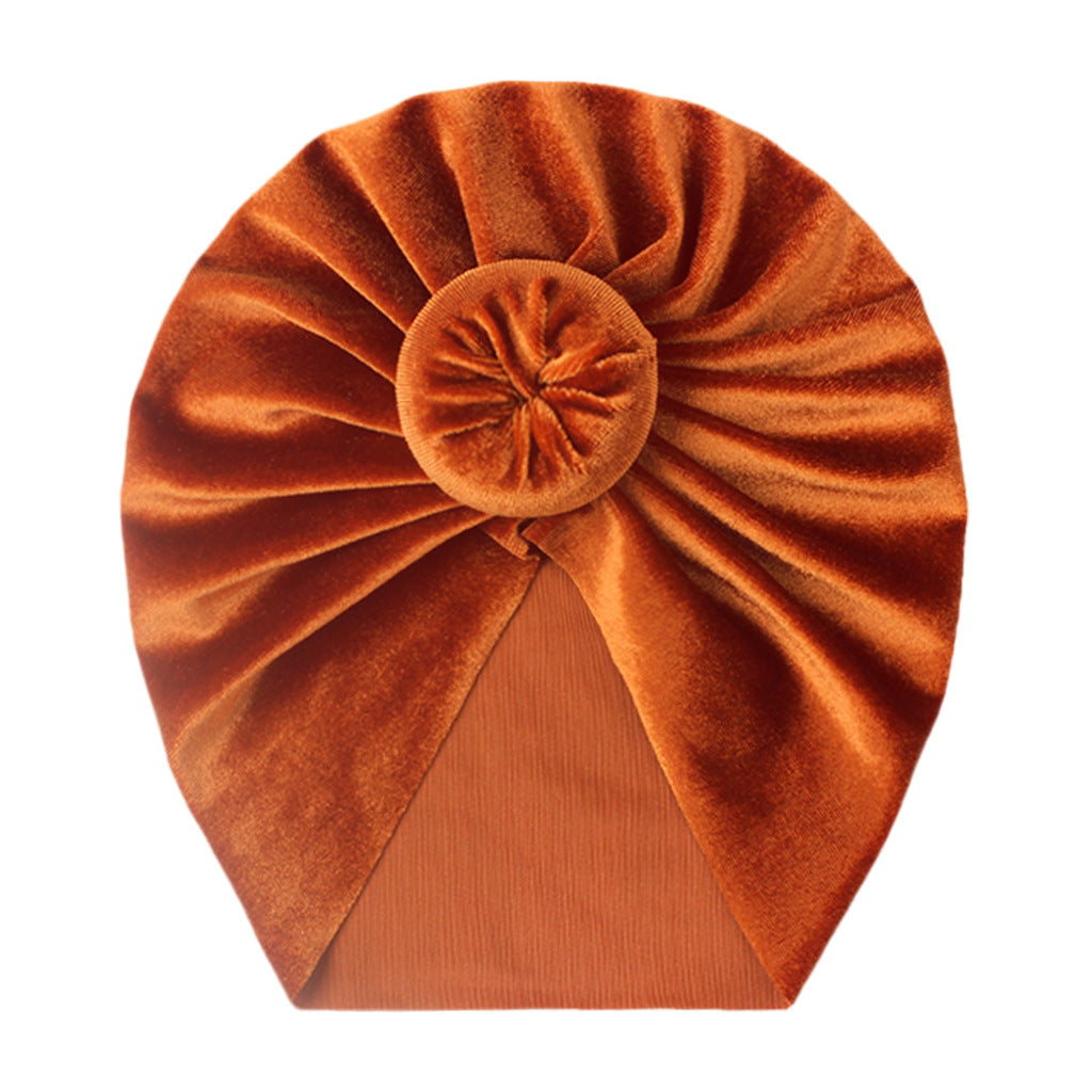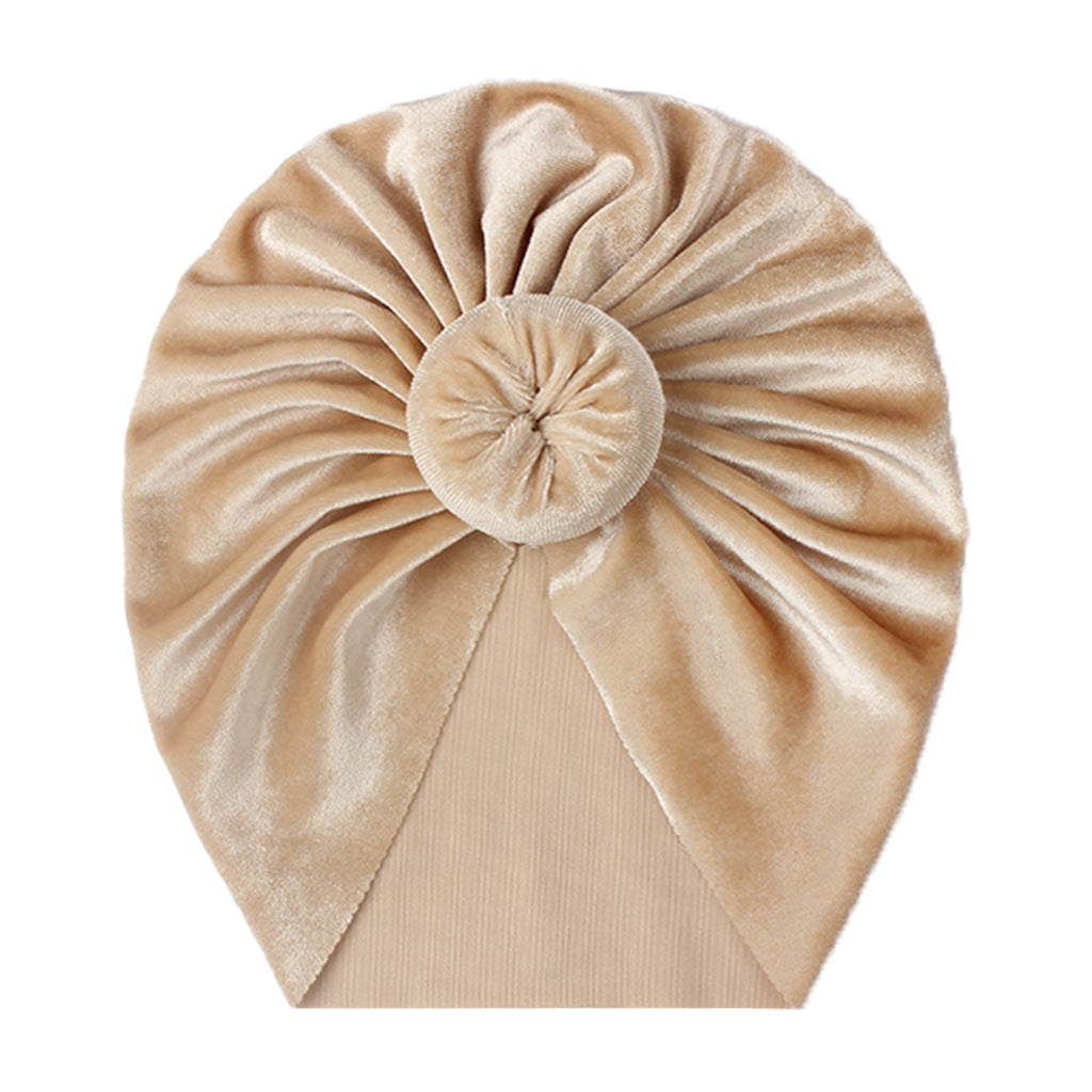 2022 new baby solid color meatball head hat cute donut children's hat velvet turbine hat