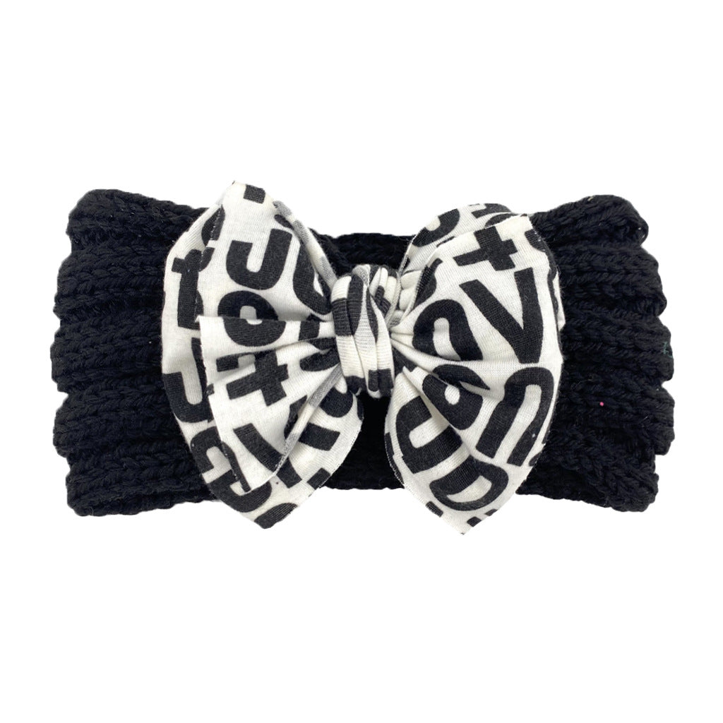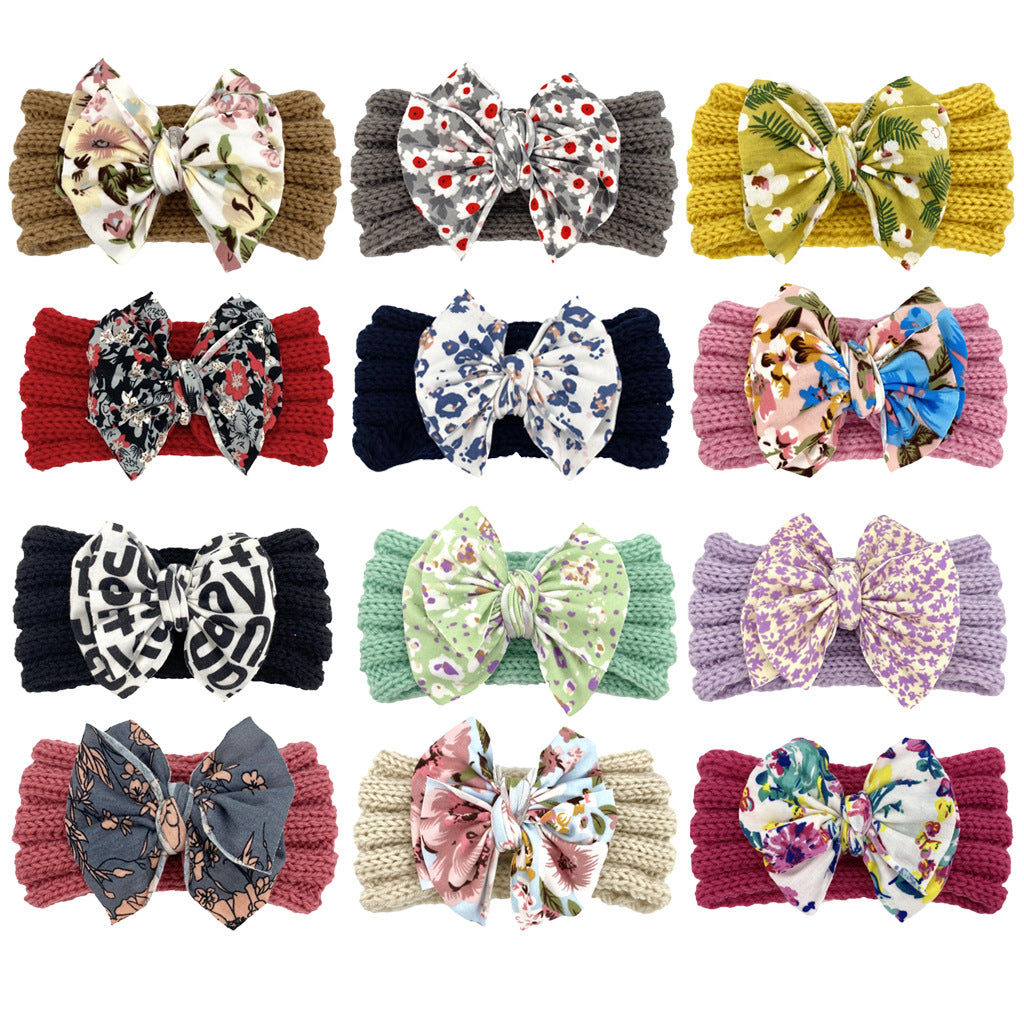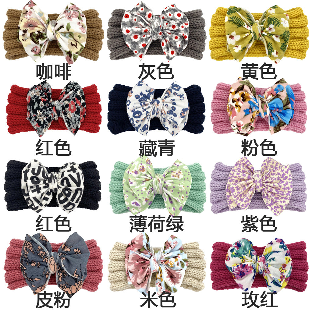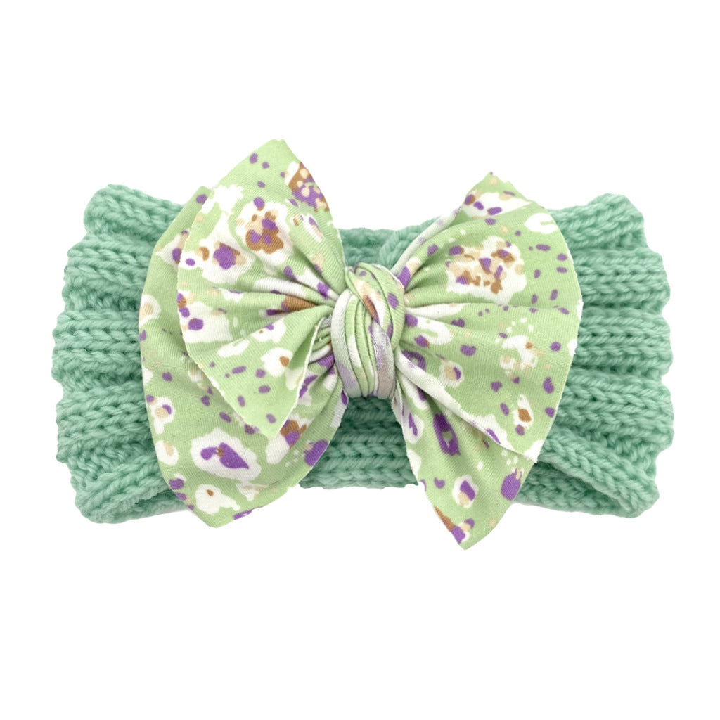2022 new baby warm hair accessories children's printed bow headband baby autumn and winter knitted headscarf Europe and the United States