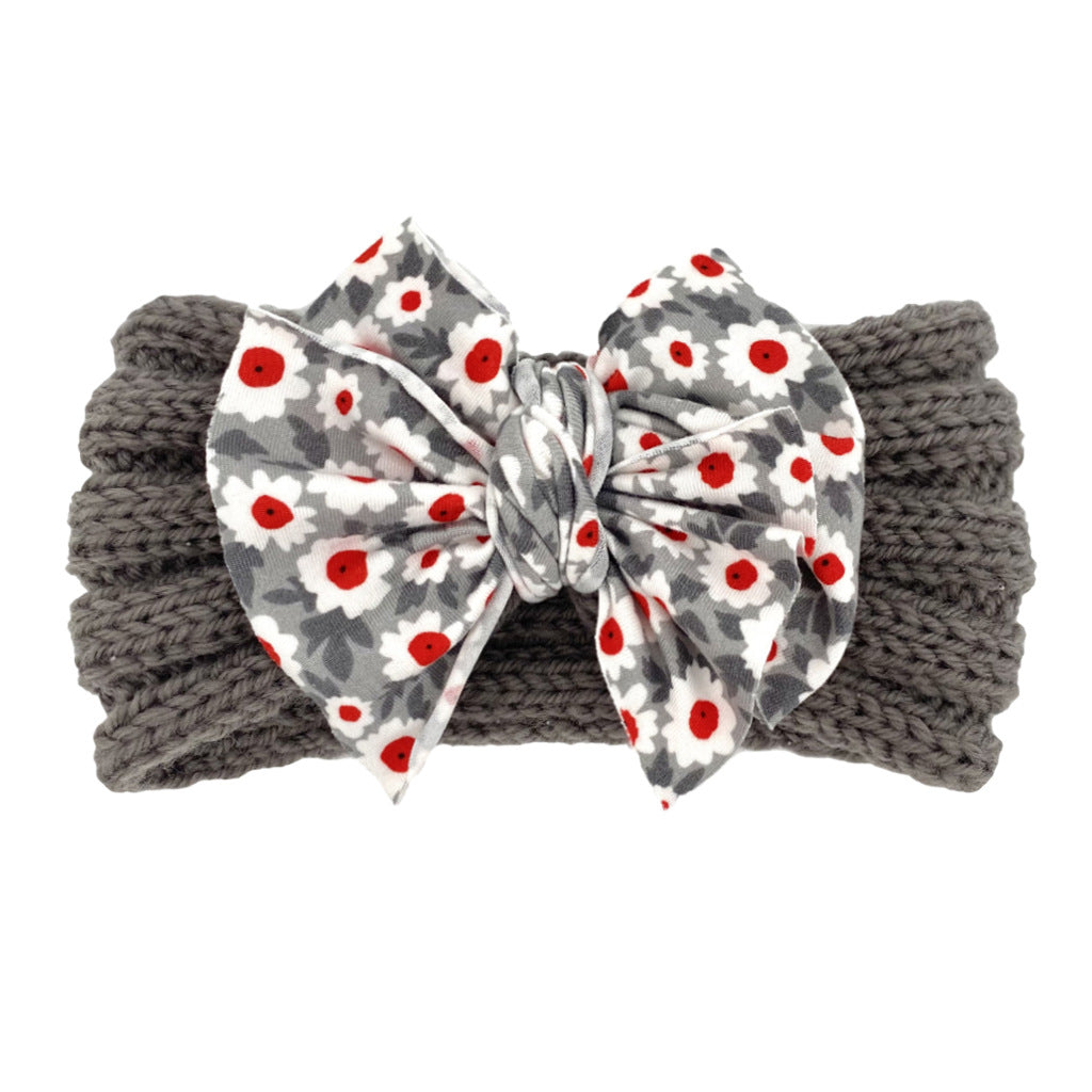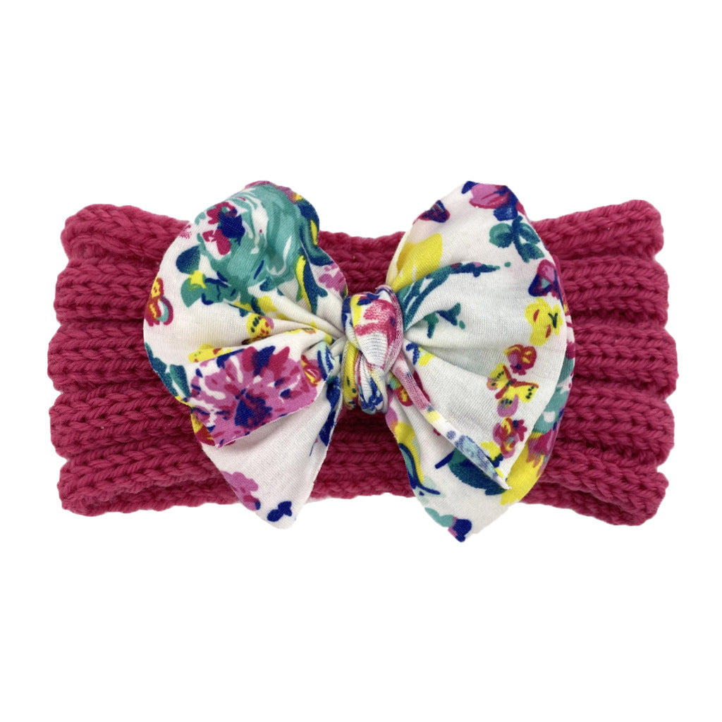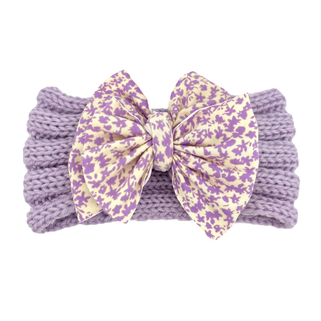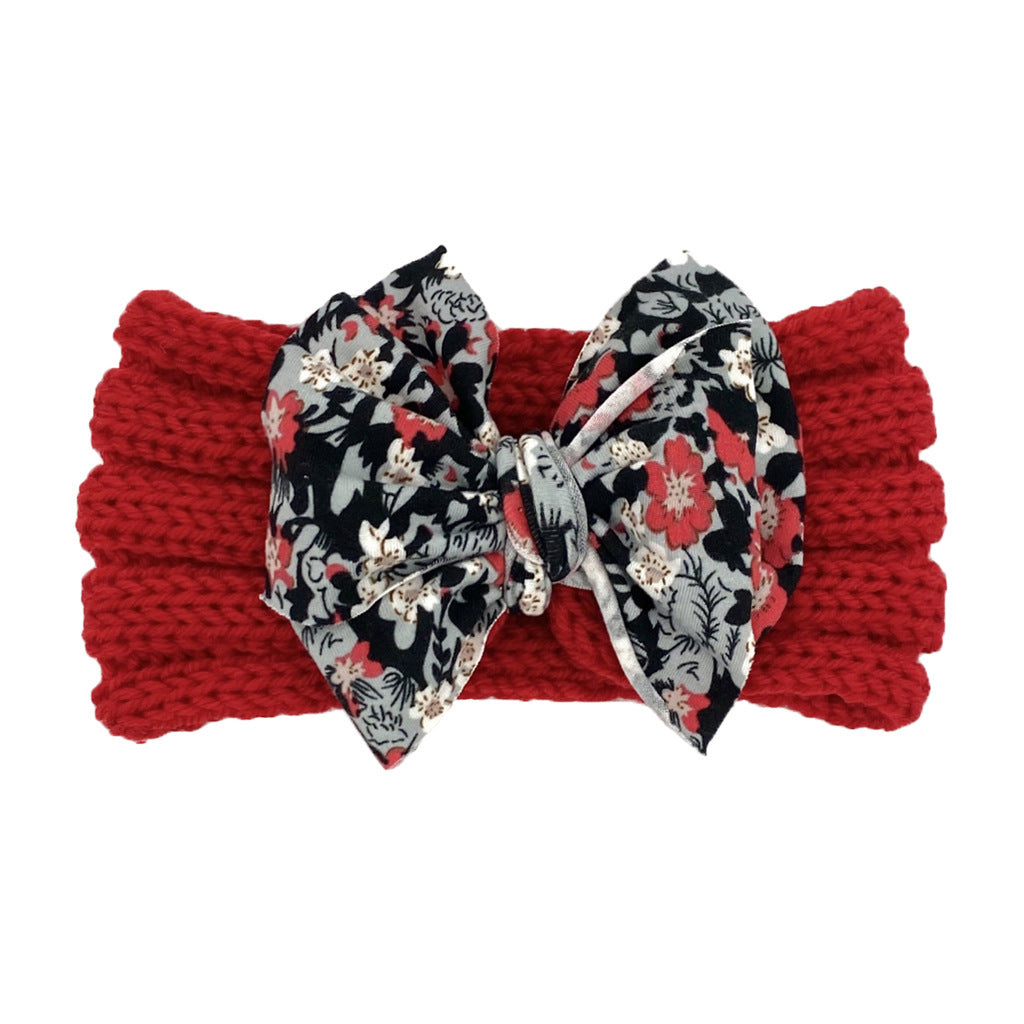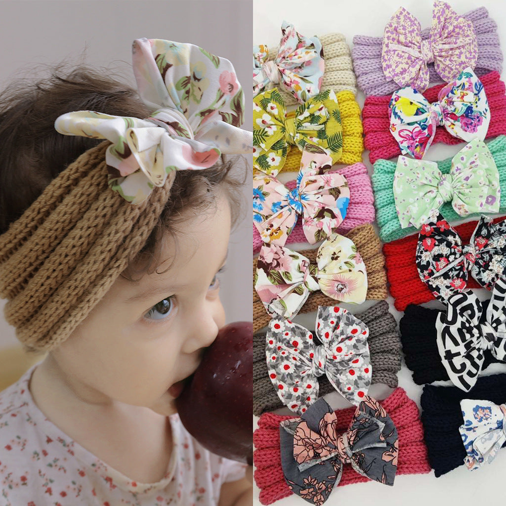 2022 new baby warm hair accessories children's printed bow headband baby autumn and winter knitted headscarf Europe and the United States