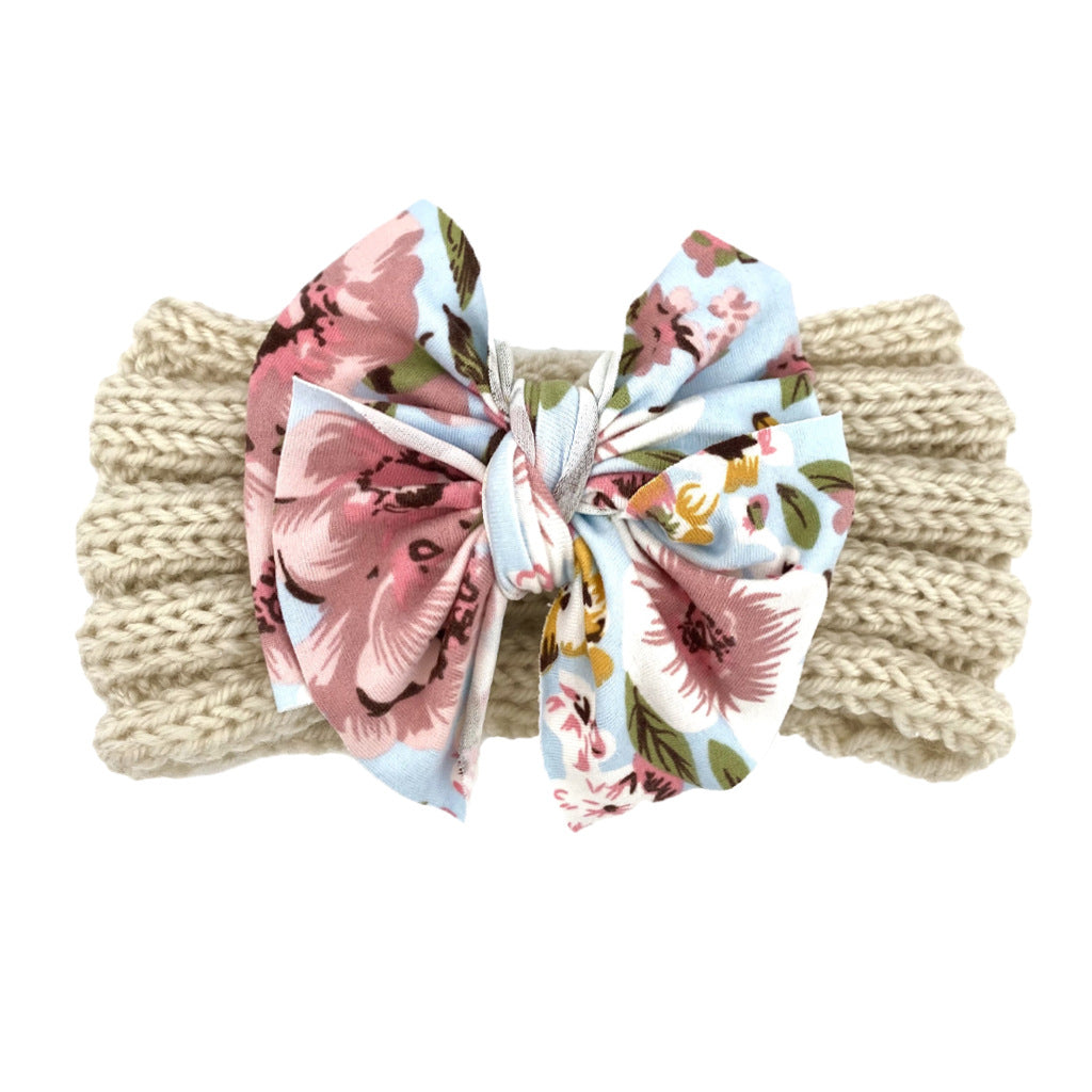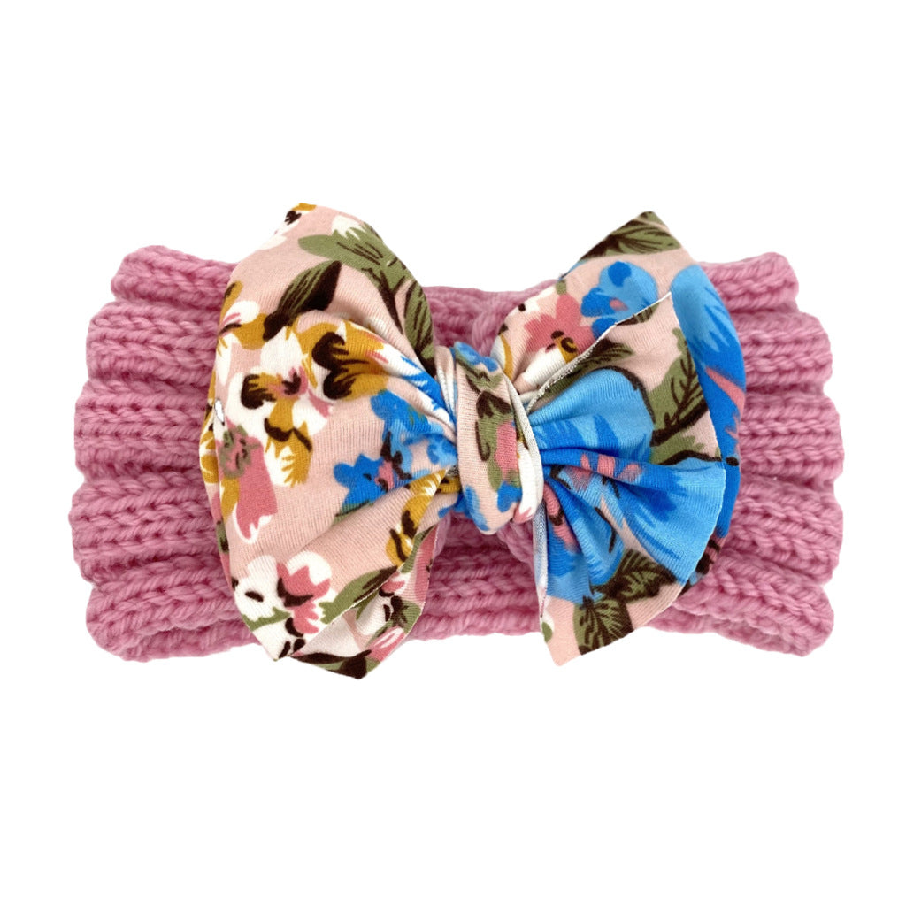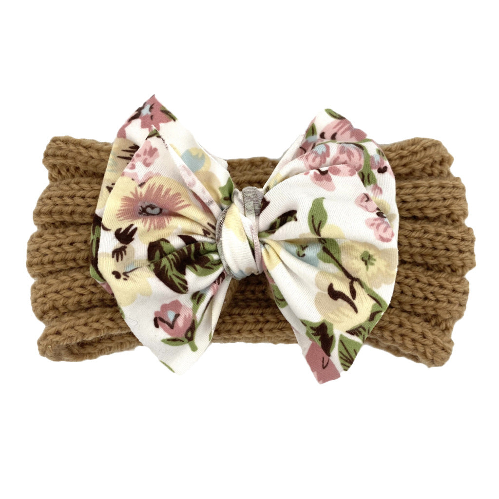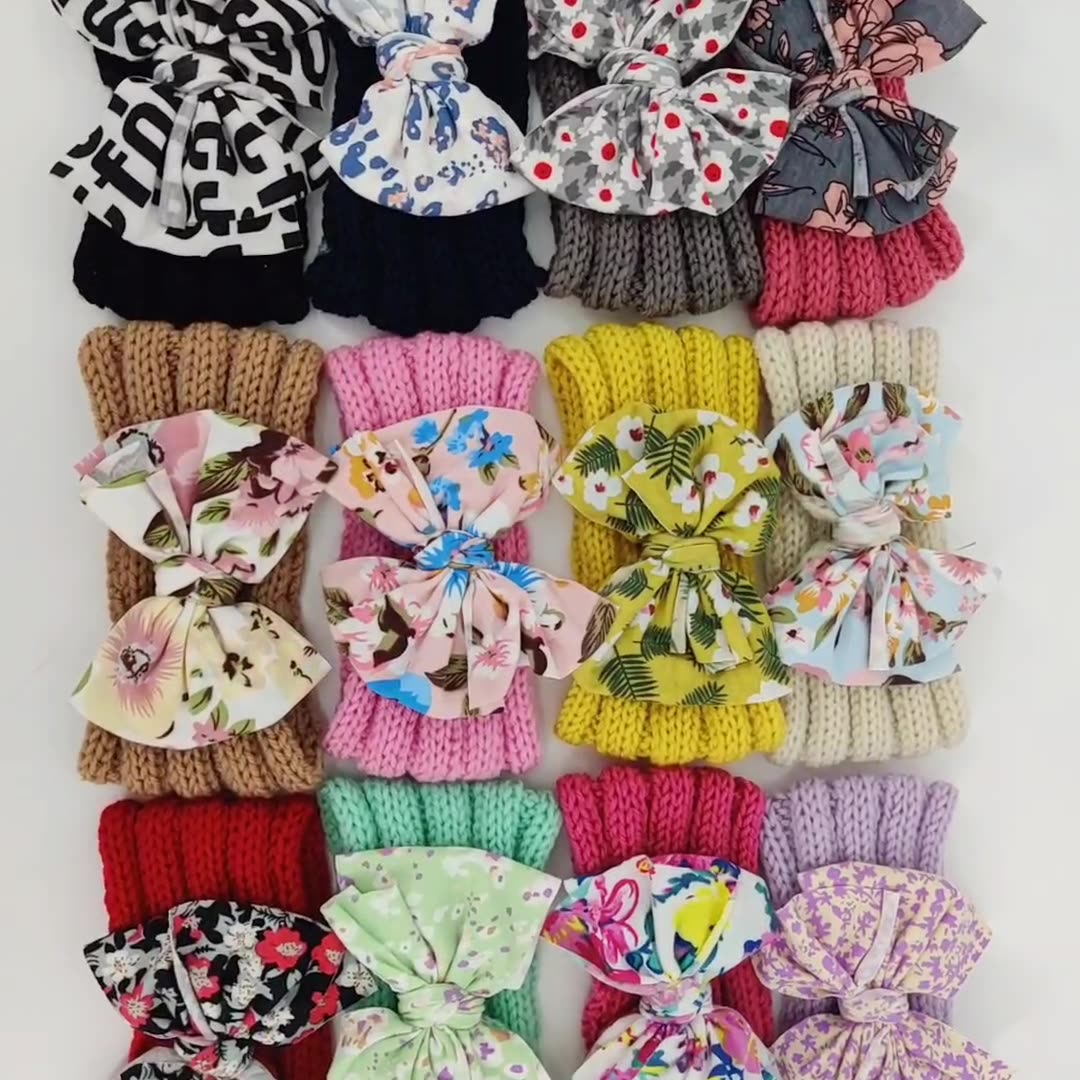 2022 new baby warm hair accessories children's printed bow headband baby autumn and winter knitted headscarf Europe and the United States